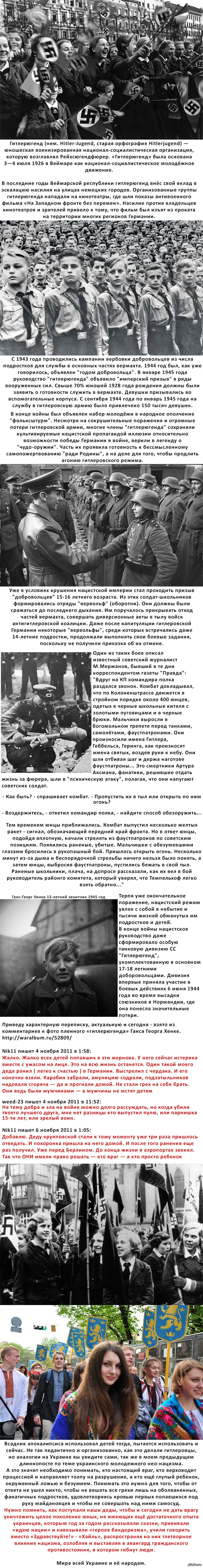 25 DELETED Политика Гитлерюгенд. Дети в руках нацизма. Украинские параллели 11 лет назад Я продолжаю выкладывать посты, посвященные проблеме нео-нацизма на Украине, параллелей с прошлым Европы очень много, увы Украина Великая Отечественная война Нацизм Германия Войска СС Гитлерюгенд Война Длиннопост