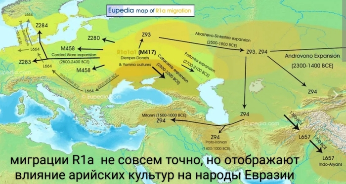 Но давайте подумаем. Так просто, на коленке , такую промышленность не сделаешь, для её возникновения нужны были предпосылки. И в первую очередь, наличие более близкого к оседлому хозяйства. Этим хозяйством на северах обладали в то время лишь арья, которые арали ары (азартно наяривали яры), то есть обрабатывали выжженные участки леса дававшие огромные урожаи. Поняли мою мыслю? Так вот, наличие высокопроизводительного сельского хозяйства толкало вперёд промышленность, а та ещё сильнее разгоняла сельское хозяйство. Вместе они толкали прогресс и производительность труда, а это способствовало взрывному росту населенияд. Оп-па! Достаточно быстро земли населённые ямниками - носителями R1b (эрбинами на жаргоне альтернативных историков), становятся территорией носителей R1a (эрастов или ариев на том же жаргоне) .