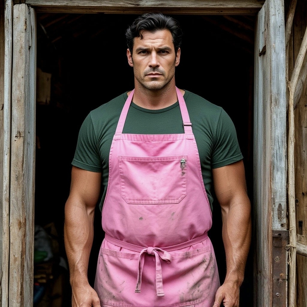 Он подошёл к шкафчику на кухне, снял обмундирование и надел розовый фартук.