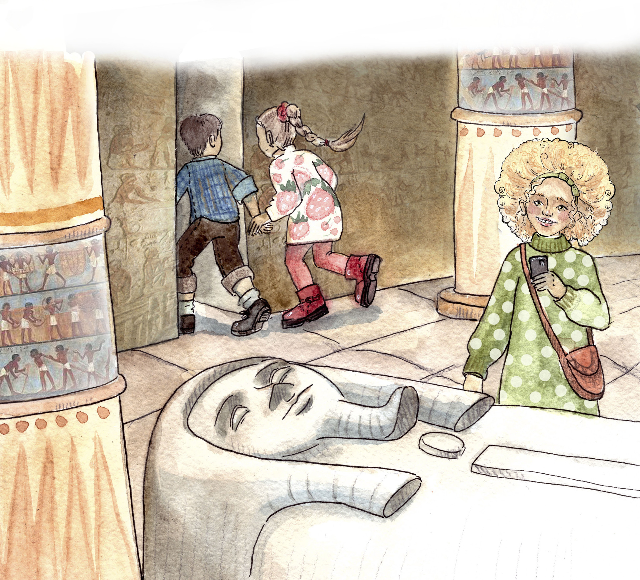 Коридоры, ступени, множество рисунков на стенах, саркофаги с мумиями и летучие мыши. Экскурсовод неторопливо рассказывал историю пирамиды, а кое-кто из экскурсантов слушал его в пол-уха, мечтая сбежать и побродить по таинственным коридорам самостоятельно. И вот Василине и Ване удалось незаметно отстать от группы. Пока остальные дослушивали древний миф о пирамиде, эти двое потихоньку шмыгнули в какой-то узкий проход и отправились на поиски приключений.