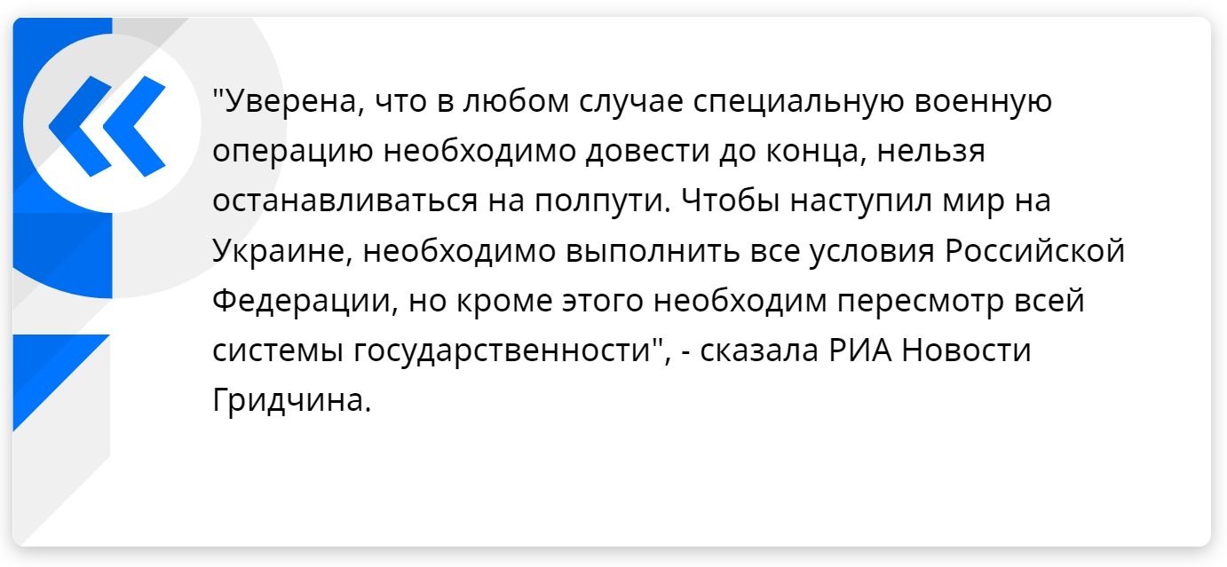 "Возможно, даже отдельные области Украины решат пойти по пути советских социалистических республик и создать собственные независимые государства, но и исключать желания некоторых областей вступить в состав России тоже нельзя", - полагает Гридчина.