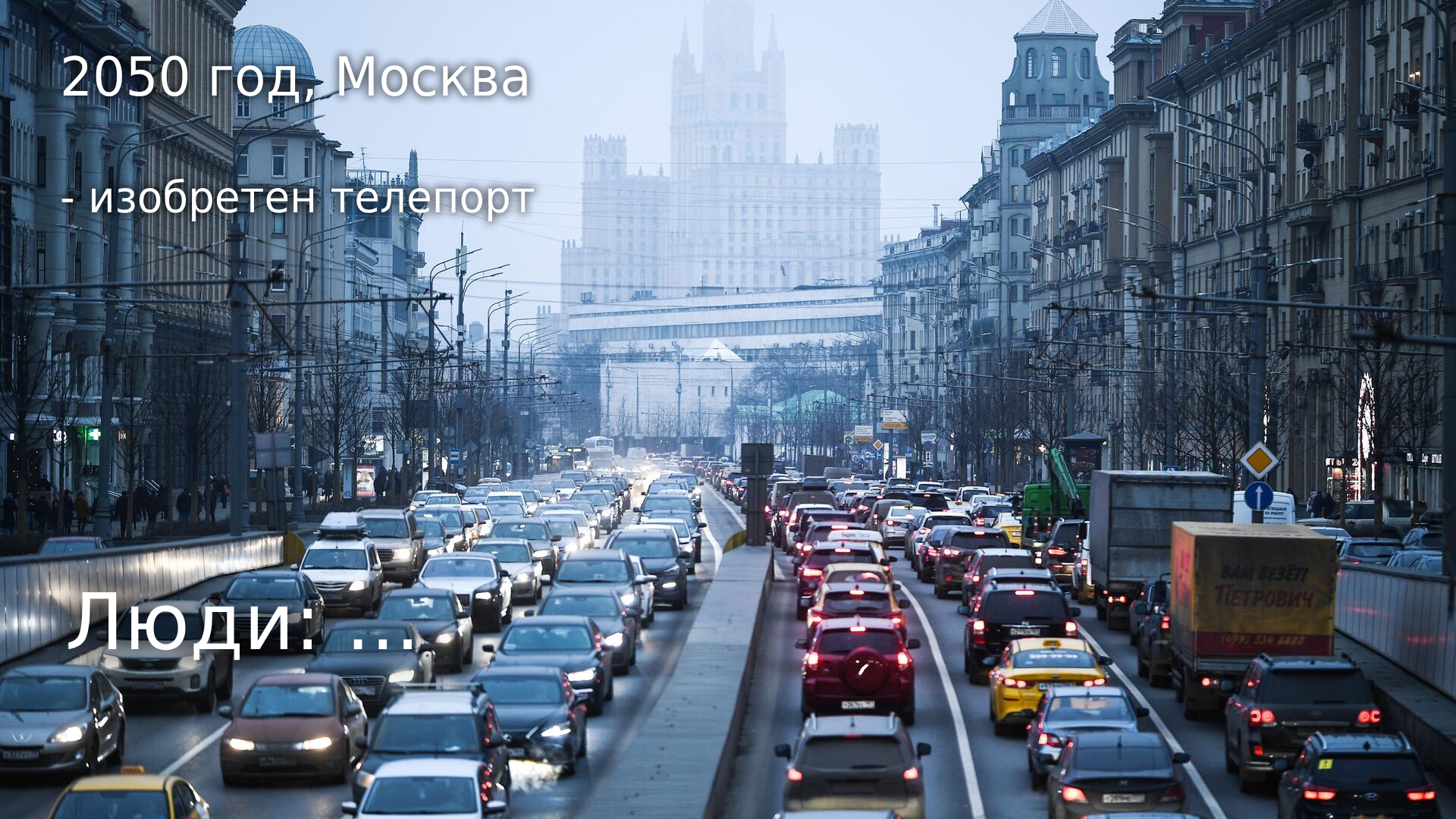 6 DELETED Транспорт Главная проблема Москвы1 1 год назад [моё] Водитель Автомобилисты Юмор Дорога Москва Общественный транспорт Транспорт Грустный юмор Картинка с текстом 1 Ещё 0
