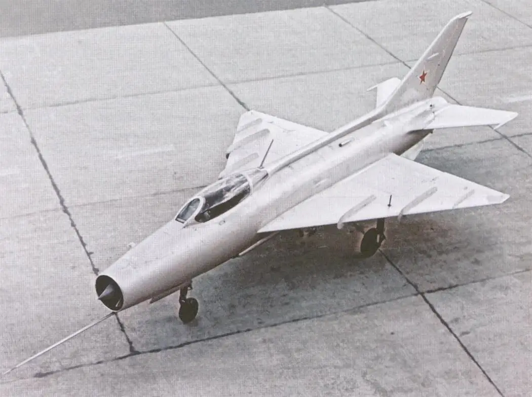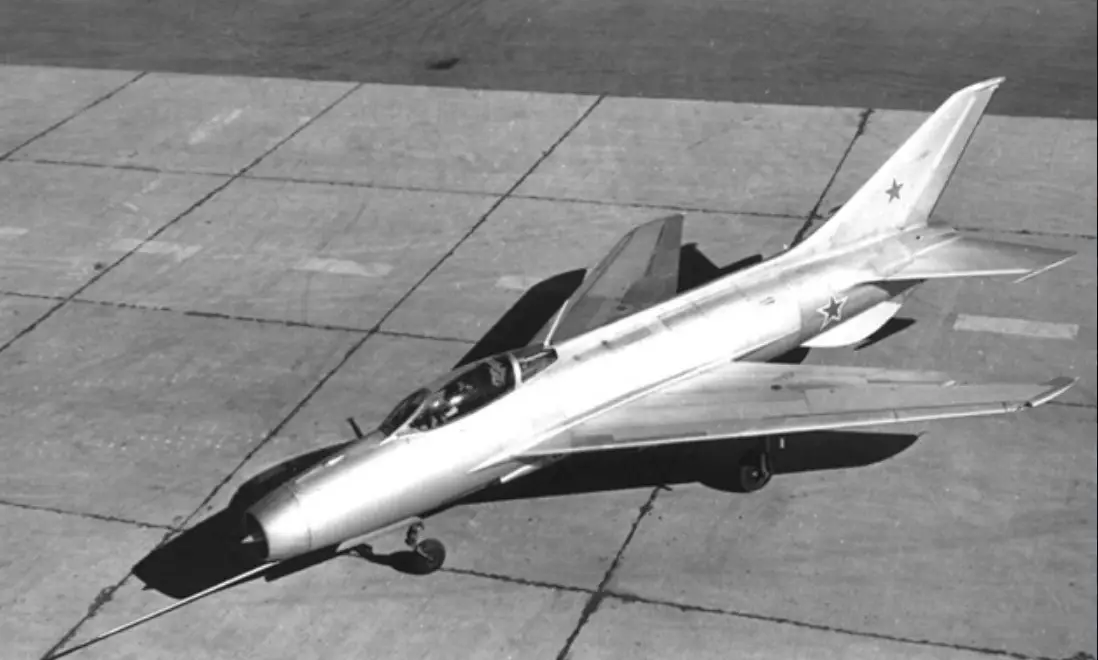 Если закрыть глаза на некоторые несоответствия, то именно в 1955 году состоялся первый полет прототипа МиГ-21. Вообще это был прототип Е-2, больше схожий с МиГ-19, но с одним двигателем АМ-9Б, который полетел в феврале 1955 года, а вот доработав Е-2 и оснастив его треугольным крылом, получили Е-4, который полетел в июне 1955 года.