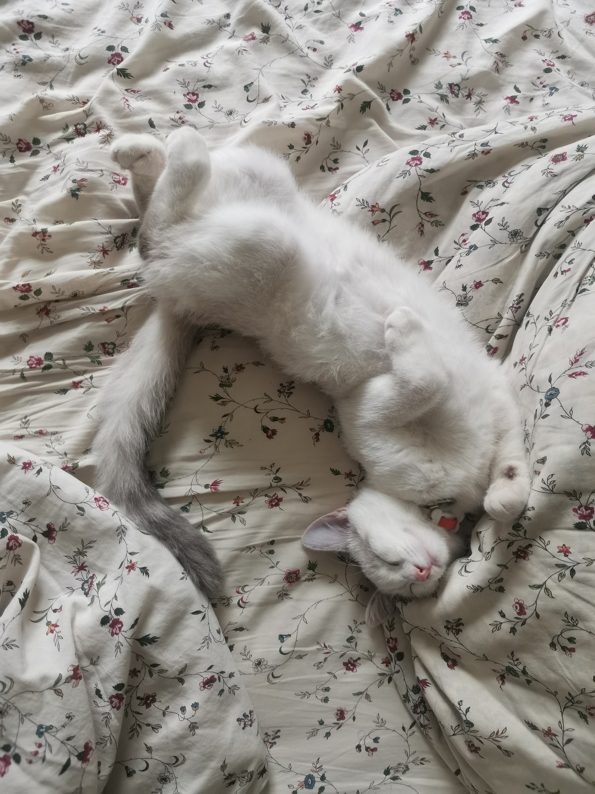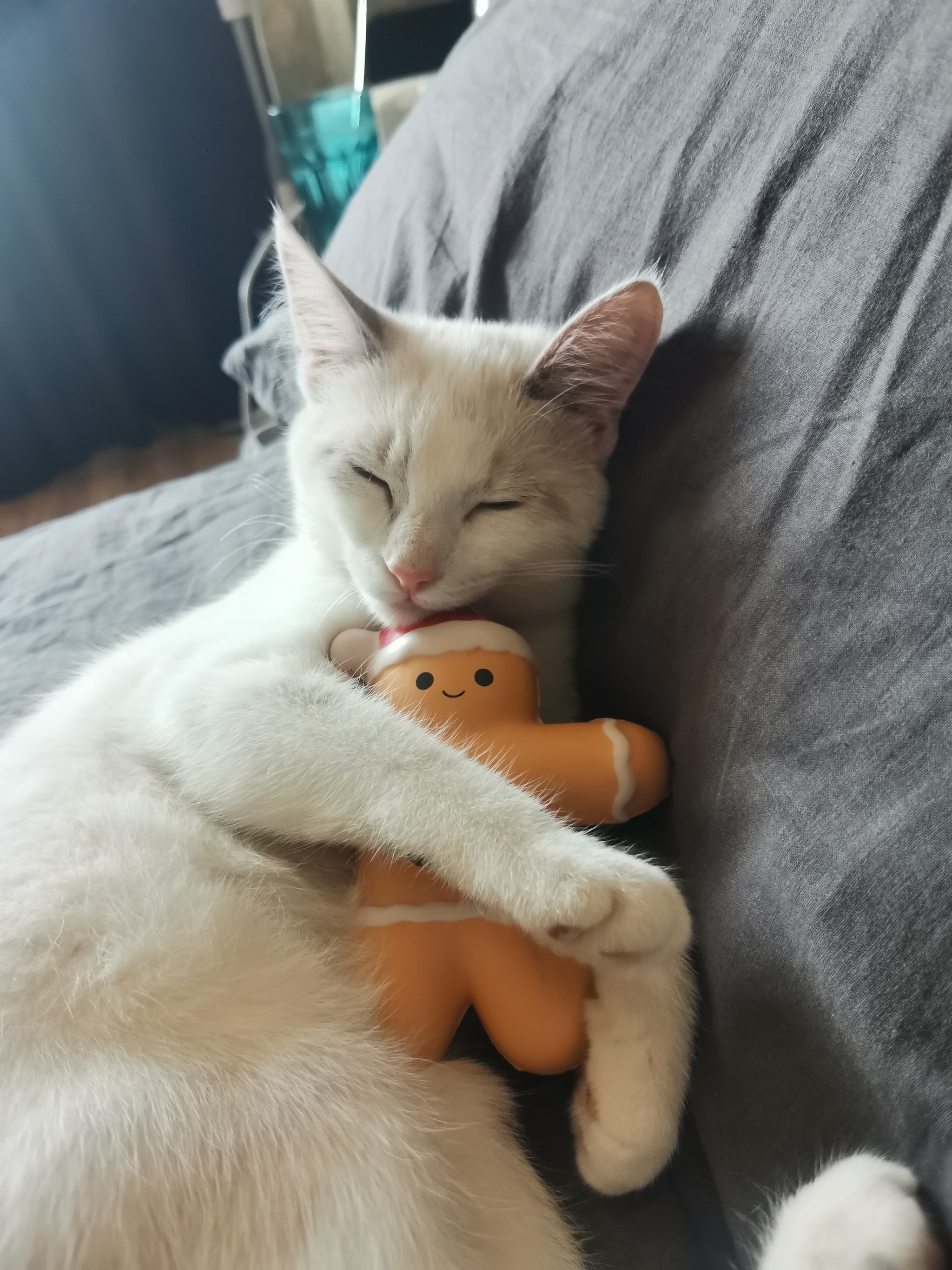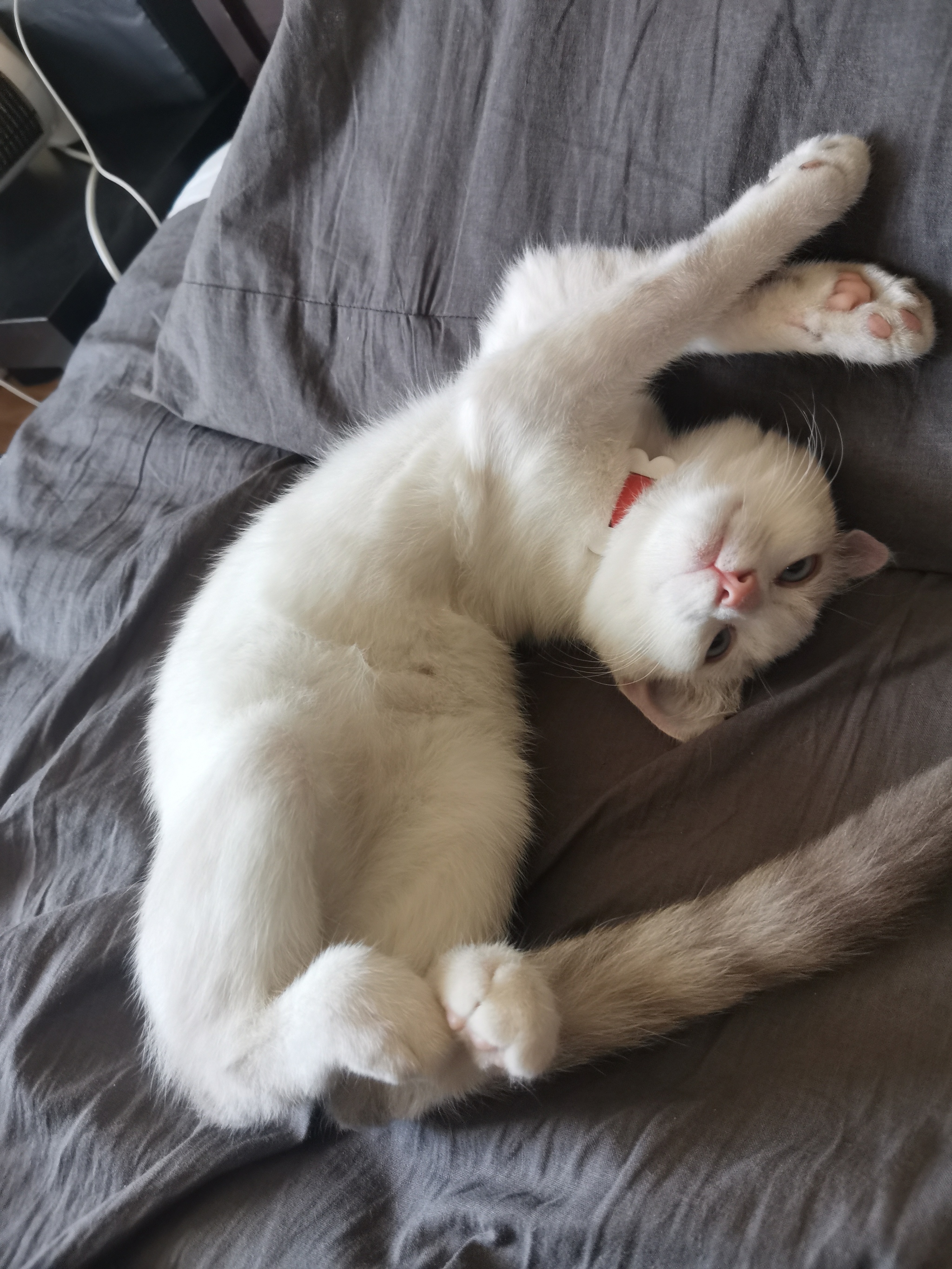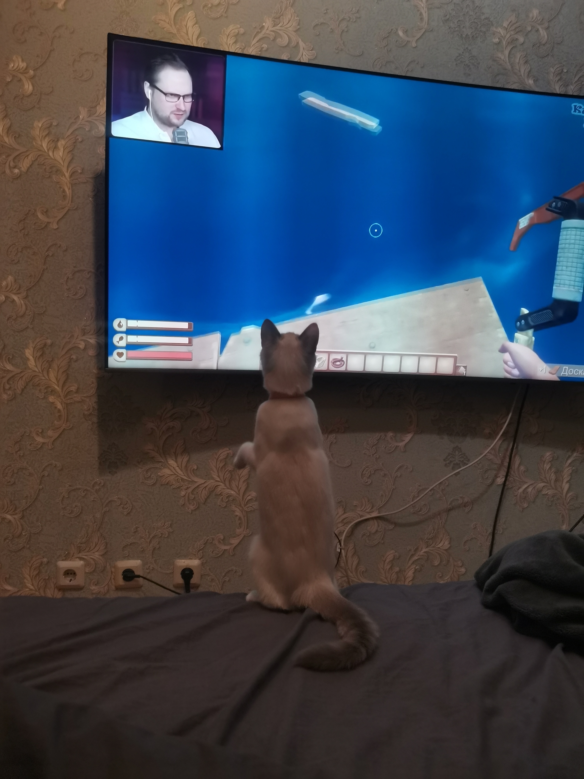 Динка мой личный мурлыкающий психотерапевт. Она никогда не оставляет меня одну, всюду ходит за мной хвостиком. Помогает мне готовить, гладить, стелить постельное и даже ходить в туалет (сидит за дверью, охраняет меня и все контролирует). Когда я режу лук, она плачет вместе со мной на кухне. Ей щиплет глазки, но она не уходит. Дина любит смотреть со мной летсплеи с Куплиновым, стоять на двух лапах, как сурикат, а иногда она смешно засыпает - сидя, как старый дед в кресле. Ещё у неё прикольно пахнут пяточки и она постоянно зевает.