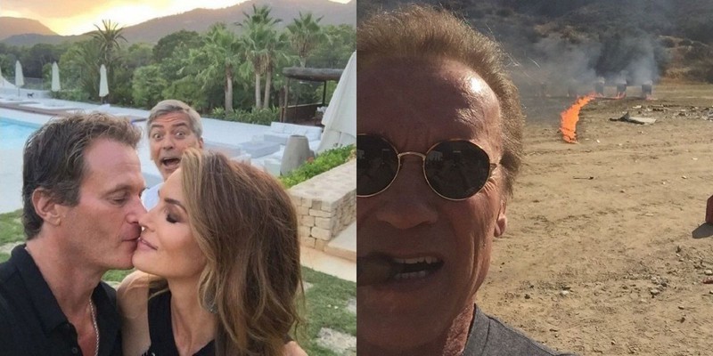 Арнольд Шварценеггер остается верен своему репертуару, и его селфи никак не отнести к разряду слезливых. Терминатор предпочел запечатлеть себя на фоне взрывов и пожарищ.