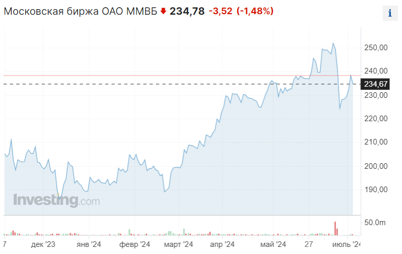 1.Московская биржа подвела итоги торгов в июне 2024 года