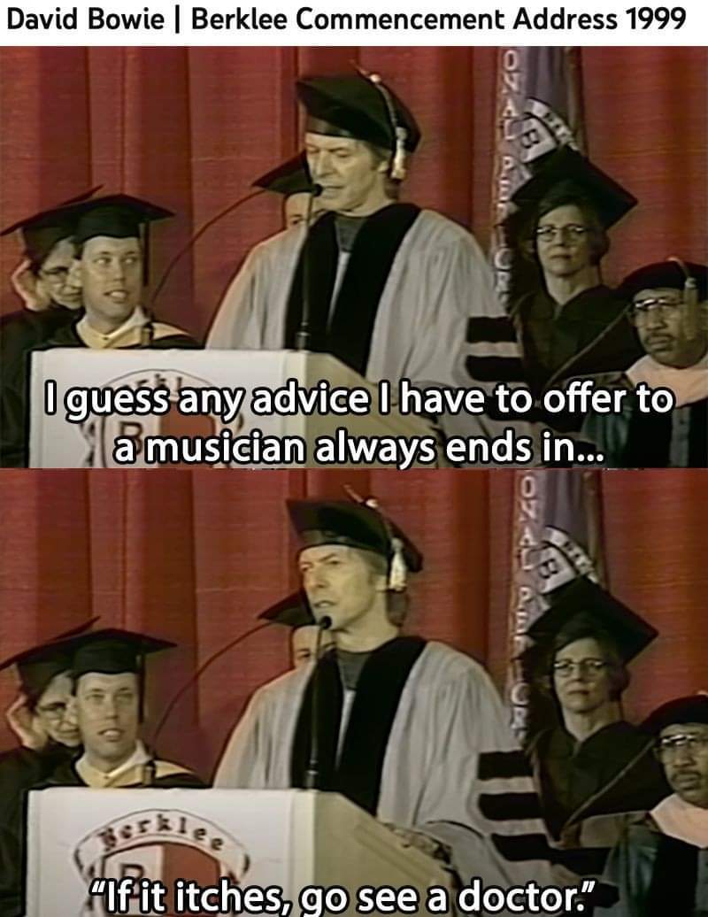Дэвид Боуи, 1999 год, выступление перед студентами Музыкального колледжа Беркли в Бостоне.