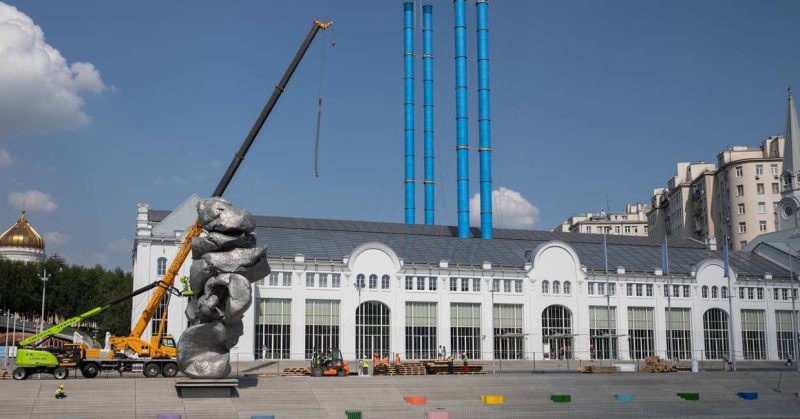 Все началось утром 28 июля: Болотная набережная только просыпается, а рабочие уже возводят забор – стартовый сигнал к демонтажу. Постепенно подтягивается тяжелая артиллерия: кран на 160 тонн и погрузчики, скромно занявшие позицию у канала. И начинается: первый «блин» (точнее, верхняя «лепешка» скульптуры) аккуратно отсоединяется от стального остова и укладывается на поддон. Элегантно, как снимают шляпу.