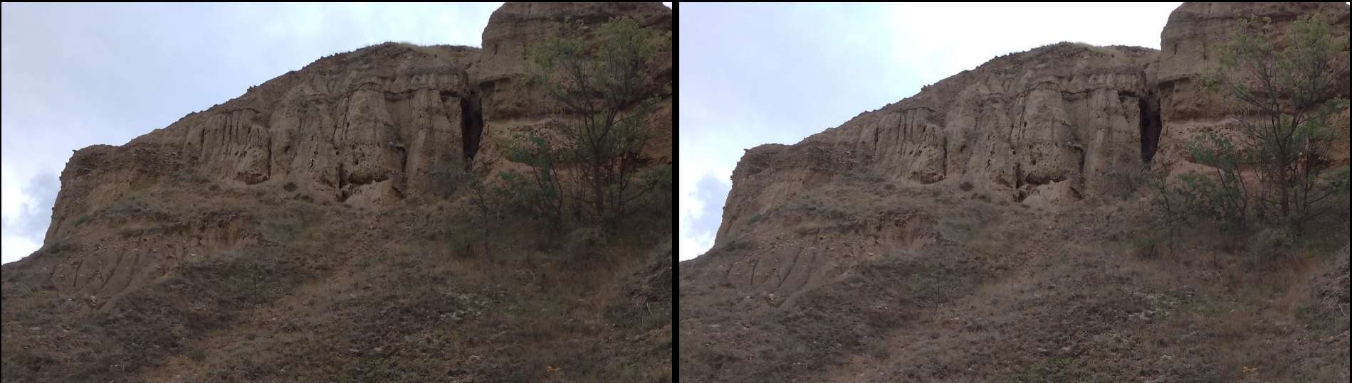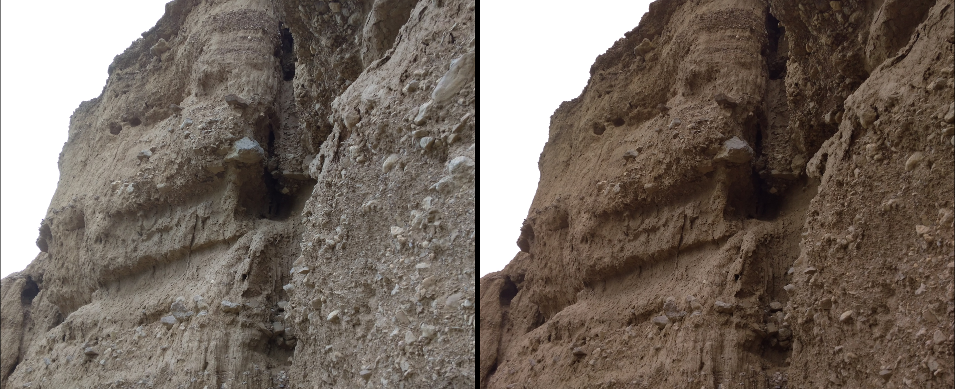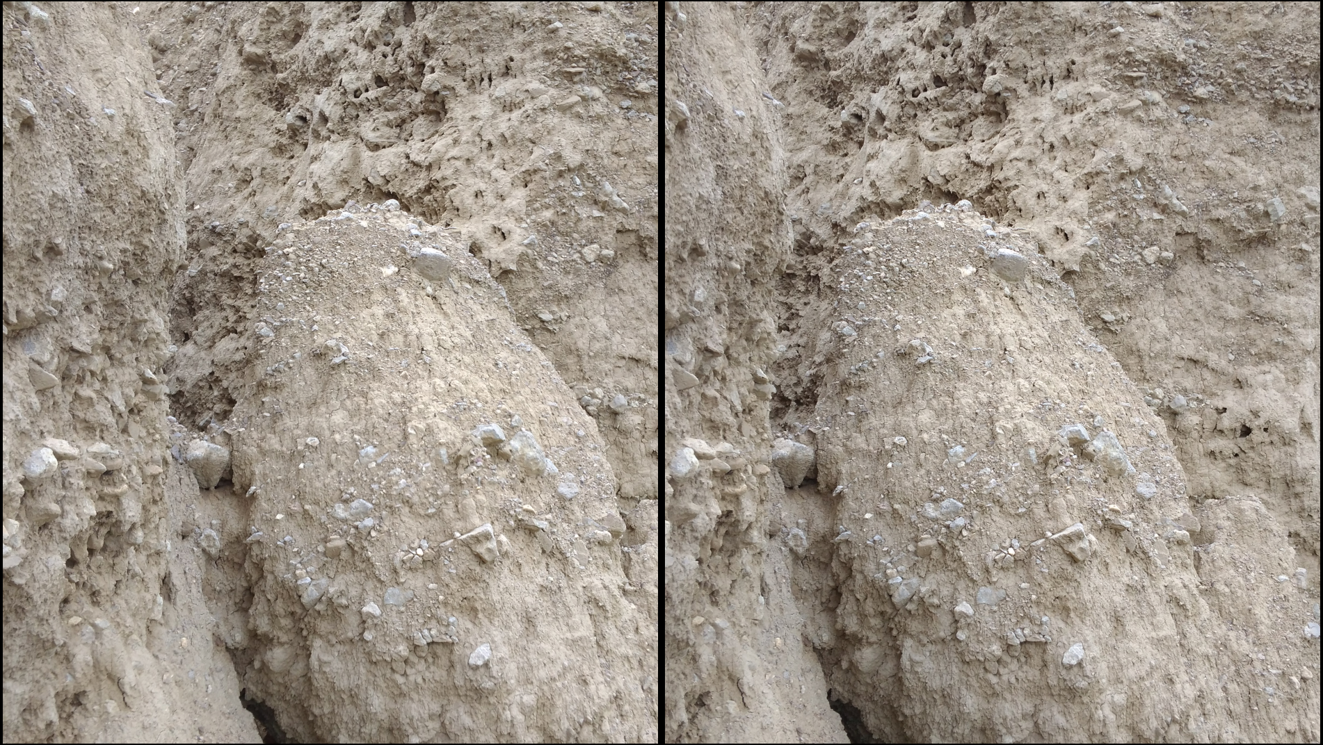 Совсем вблизи: видно, что это размытая глина, и что это не дело человеческих рук