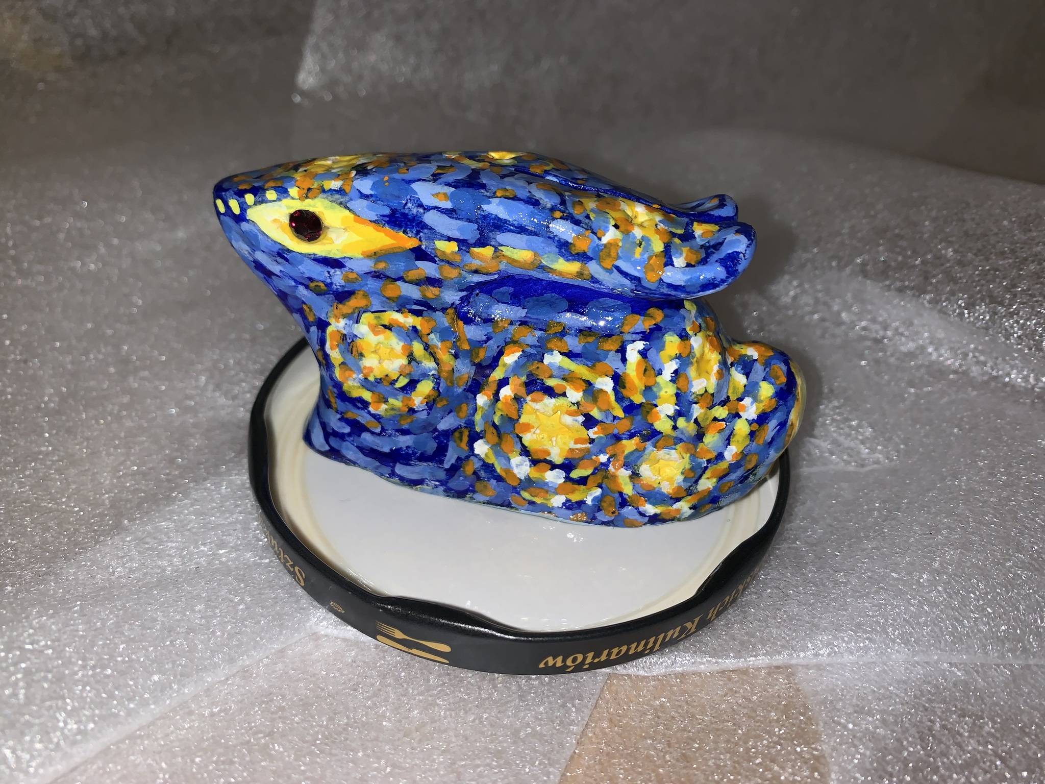 Глиняный заяц, сделала сама. С кого взят стиль рисунка думаю знаете