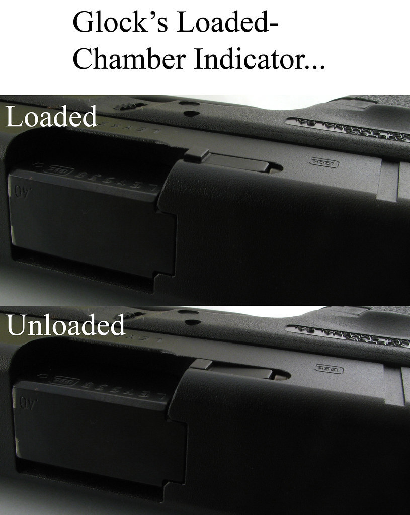 Вот поэтому и ценно общение с людьми, потому что в интернете иногда постят странное, я буду рад вам объяснить, как дело обстоит в действительности. Картинка, которую вы привели вводит в заблуждение, экстрактор если и меняет свое положение, то это от силы миллиметр, как индикатор это вообще не работает (глок 17,может для других моделей это лучше работает, но сомневаюсь), поэтому в пистолетах подороже и повыше классом, чем глок делают отдельный индикатор.