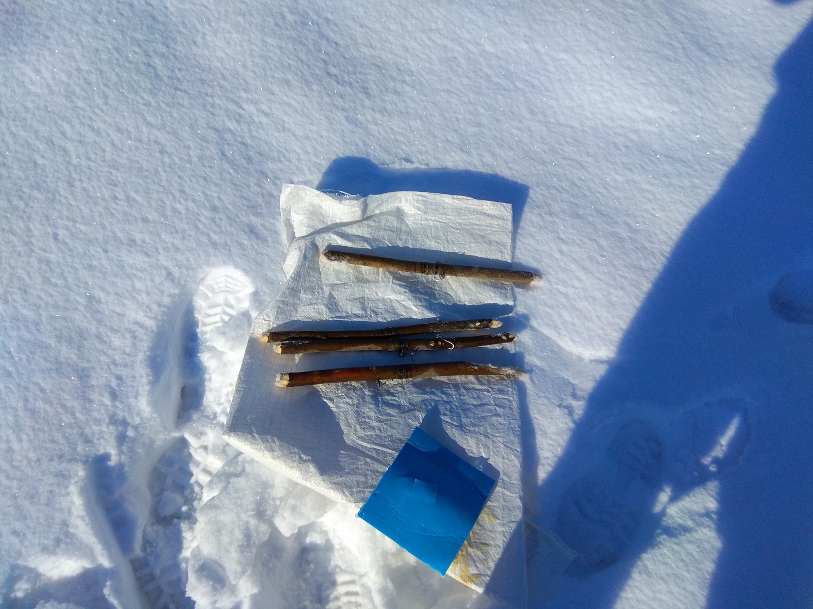 Шесть «жерлиц» нашел быстро по меткам – воткнутым веточкам. А вот седьмую пришлось поискать – веточку то ли сдуло ветром, то ли она за четыре дня оттепели провалилась в снег.