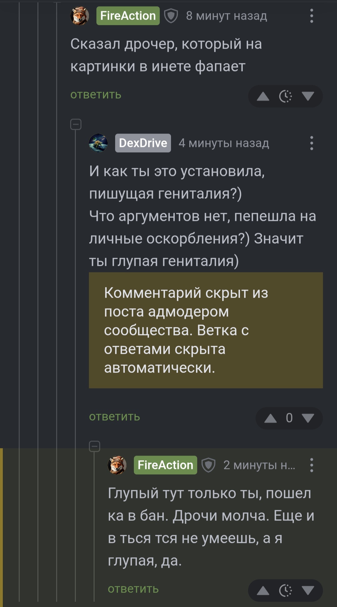 DexDrive Глупая, обиженная гениталия)) 7 месяцев назад Существо, которое может предложить миру только своё голое тело обиделось, что ему об этом сказали, хотя само тело и спросило, что же общество об этом думает) ахах) [моё] Вопрос Глупость Голые Без рейтинга Ещё 0