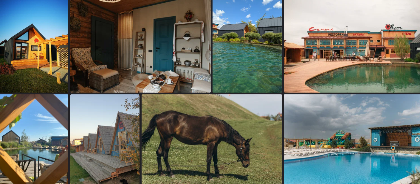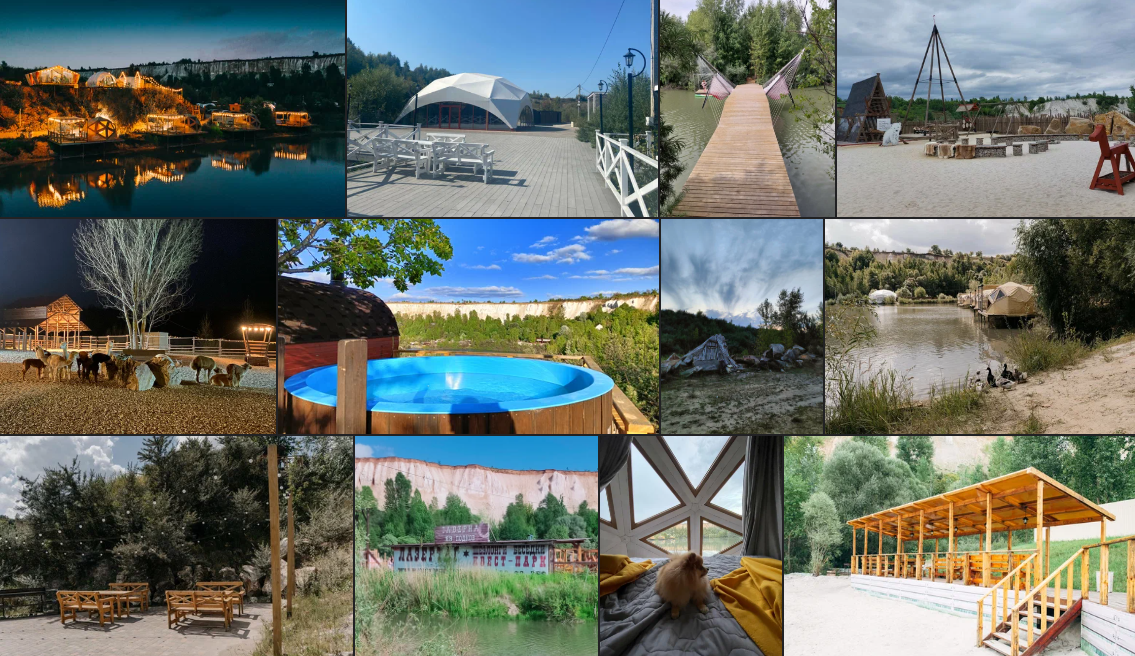 Глэмпинг расположен в окружении живописных известняковых скал и кристально чистого озера — природного памятника «Белый колодец». Это уникальное место идеально подходит для любителей активного отдыха и уединения в экологически чистом районе. На территории глэмпинга находятся уютные домики с панорамными окнами, зоны отдыха, пляж, прокат лодок и велосипедов.