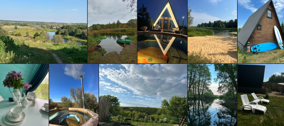 Глэмпинг находится рядом с живописной рощей и рекой Усманкой, даря возможность насладиться природой и полным уединением. Домики A-frame оформлены в современном минималистичном стиле и прекрасно вписываются в окружающий ландшафт. Это место идеально подходит для романтических выходных или неспешного отдыха с друзьями.