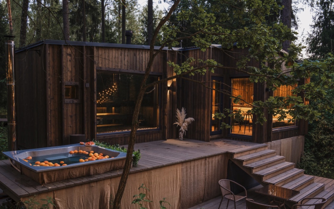 Комплекс на 40 га, где каждый найдёт жильё по вкусу: домики на деревьях, шале с баней, A-frame и даже маленькие шале-арт. На месте — ресторан с местными деликатесами, мини-зоопарк, мастер-классы по сыроварению и рыбалка. Малый дом на дереве — от 9 990 ₽, шале с баней — от 25 090 ₽.