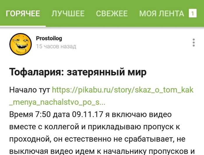 deatwisedog Глюк пикабу 8 лет назад Админ, видимо, ОЧЕНЬ хочет чтобы я прочитал эту историю... Догадываться что что-то не так я начал когда время 7:50 уже в третий раз попалось на глаза... Пикабу Глюки История День сурка Скриншот Длиннопост