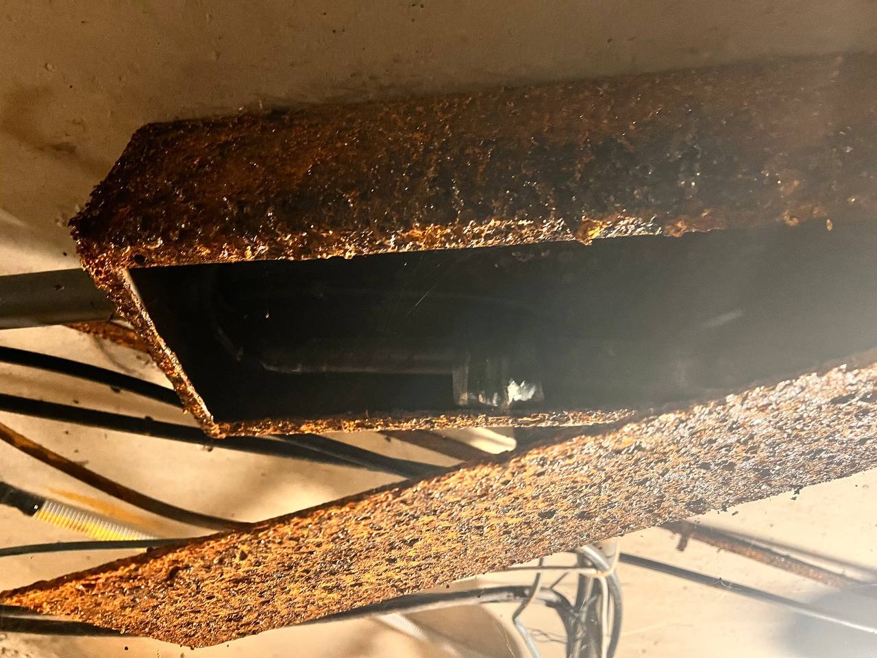 Я осматривала его с отвисшей челюстью, не веря своим глазам. Одна труба оказалась особенно любопытной и казалась обманом зрения. Я провела над ней рукой и нет, всё было реальностью - верхняя половина трубы отсутствовала. Она сгнила и теперь что-то текло по ржавым остаткам, как по канаве. От зрелища вокруг волосы вставали дыбом на всех местах и даже немножечко шевелились.