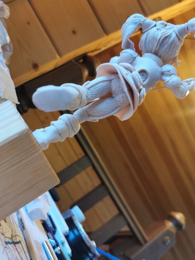 После формирую нужную позу и набираю "мяско", постепенно вылепливаю наряд, примеряю голову, появляется все больше деталей. Это самая длительная и кропотливая часть