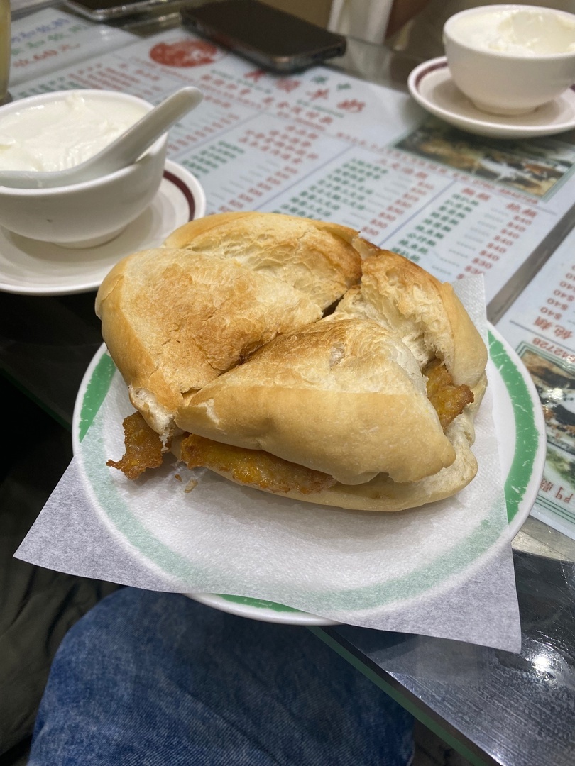 4) Тут традиционная Макаовская/Макавская/Португальская (Выберете нужный вариант или придумайте свой) булка с куском свинины. В прошлый раз я пробовал и мне не понравилось. Было очень жирно. А тут и булка вкусная сама по себе и свинина не такая жирная. В общем все от заведения зависит