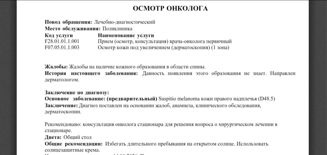 И тут мне дерматолог говорит, что ей что-то не так. Типа родинка не такая