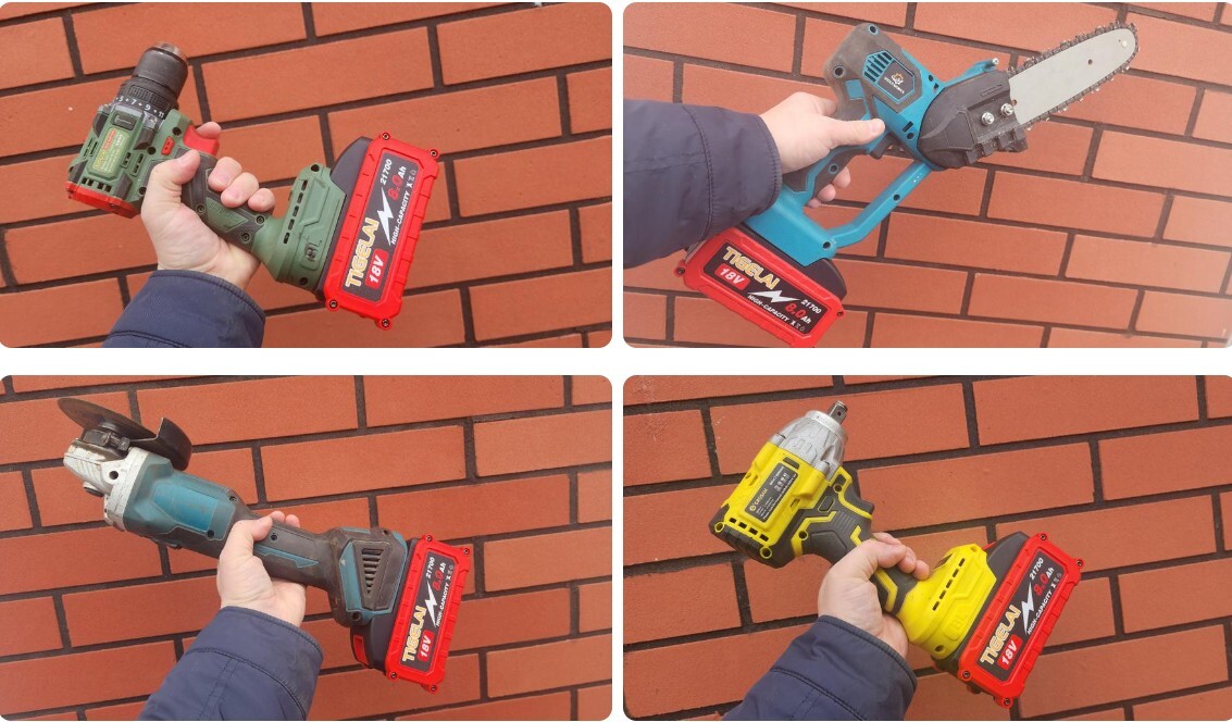 Для компактных инструментов, таких как кромочные фрезеры, винтоверты или шуруповерты — эта батарея будет добавлять лишний вес и увеличивать габаритные размеры. Пользоваться можно, если это обосновано. То же самое можно сказать и для инструментов, не требующих особой мощности при работе, например, для беспроводных клеевых пистолетов или для рабочих фонарей/осветителей. С другой стороны, такая батарея заметно продлевает время работы инструмента. Что же касается мощных потребителей, таких как циркулярные и цепные пилы, УШМ, перфораторы и гайковерты. — то данная аккумуляторная батарея будет хорошим выбором, обеспечивающим и высокую токоотдачу, и длительное расчетное время работы. В плане совместимости нюансов не заметил — подключается и работает со всеми моими «тушками». Подключал даже к технике Finepower и Worx, используя переходники. Купить аккумуляторную батарею на 21700 ячейках можно тут. Альтернативная батарея на 21700 от TPCELL.