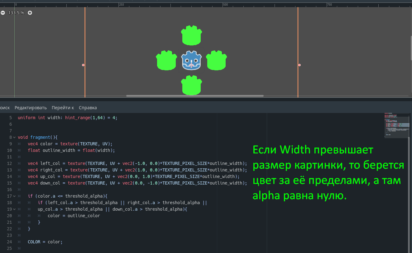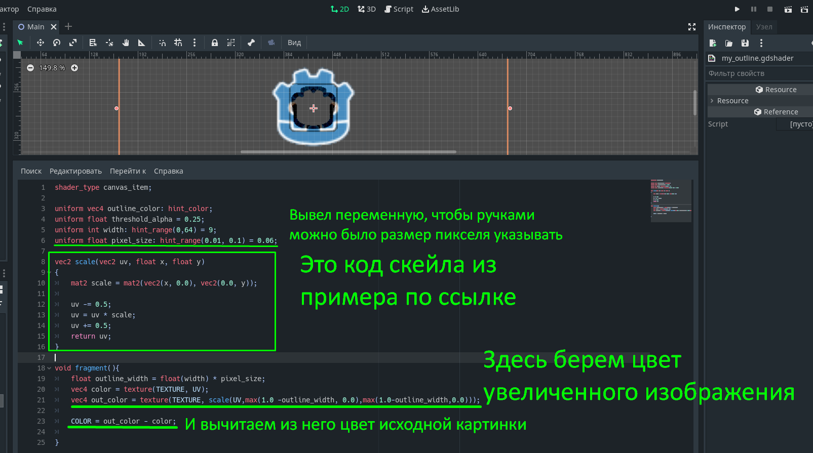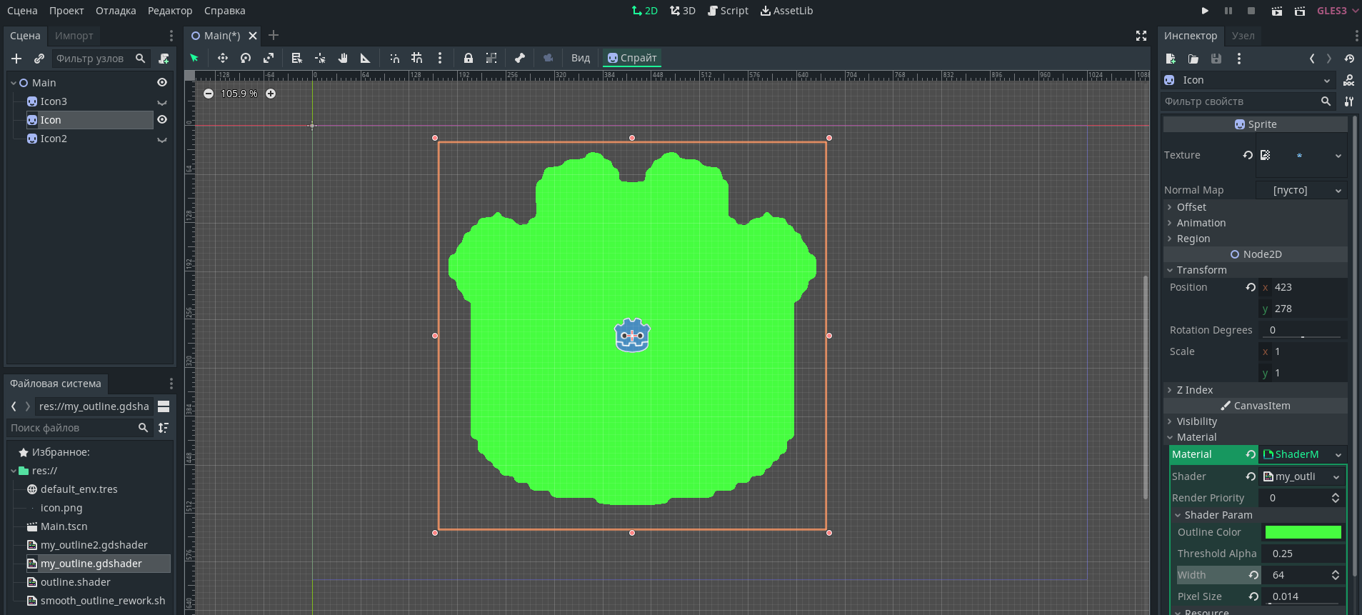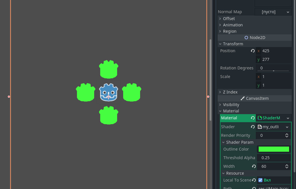 Godot. Путь к основам VFX. Пишем свой outline shader. Ч2