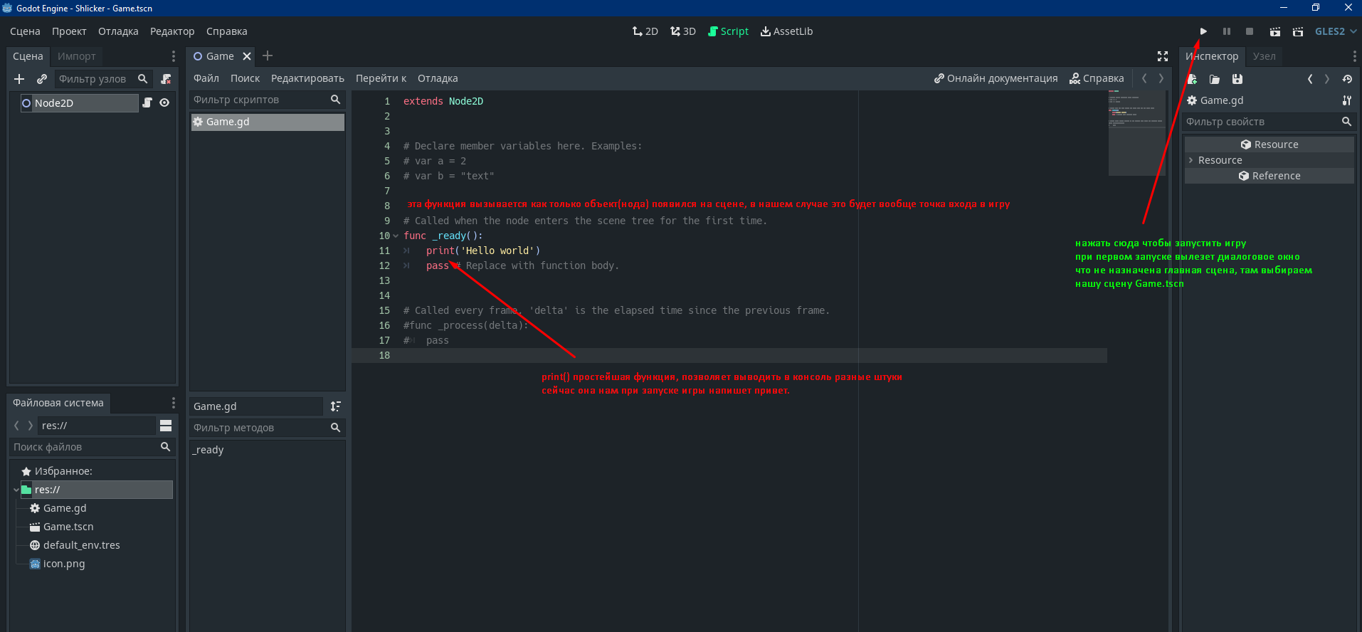Godot путь новичка. Hello World