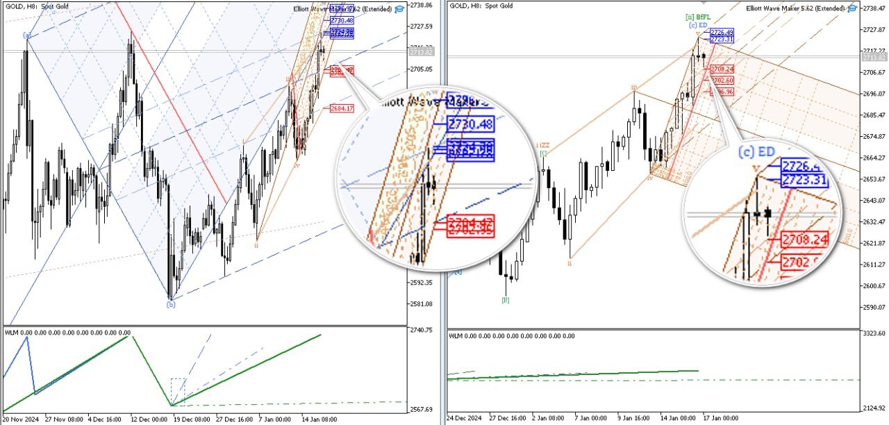 💼#Gold, продолжение к предыдущему посту как только цена достигла сопротивление на двух волновым уровнях на графике слева⚡️, нанес символы волновой разметки на волновую вершину, далее строю разворотные вилы Эндрюса на графике справа, пока цена находиться в красной зоне разворотных вил, сохраняется риск продолжение однонаправленного ценового движения, как только цена выйдет из красной зоны , закрепиться за ней , это будет торговым сигналом для открытия позиции на соответствующем волновом уровне . по всем Вопросам @vestnik_voln⭐️