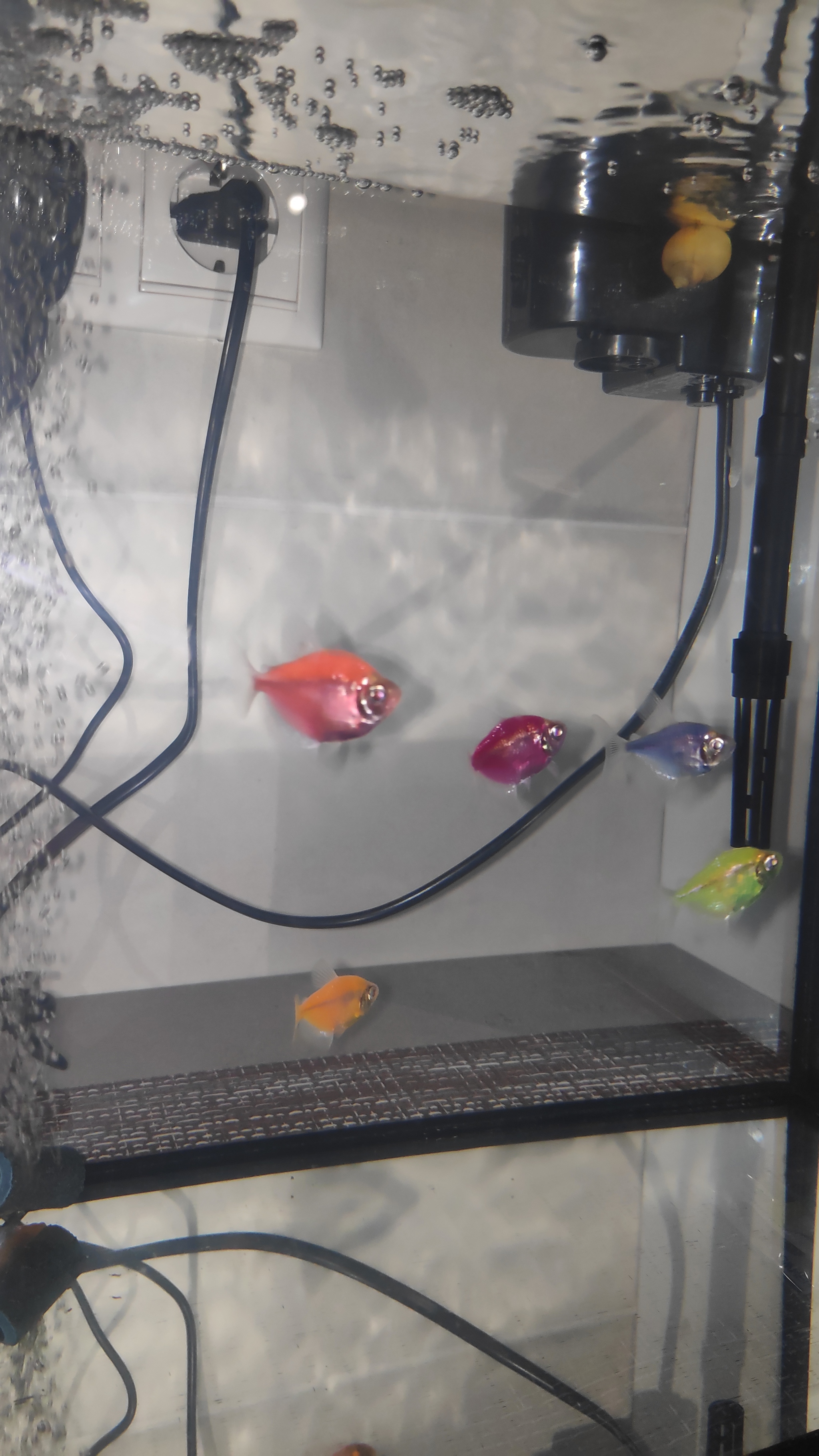 Сегодня я подселила нового малыша анциструса, и дабы скрасить стресс от переезда решила подкинуть ему таблеточку. Каково же было мое удивление, когда я увидела, что банда тернеций во главе с розовой атаманшей радостно пожирают сомячий корм)