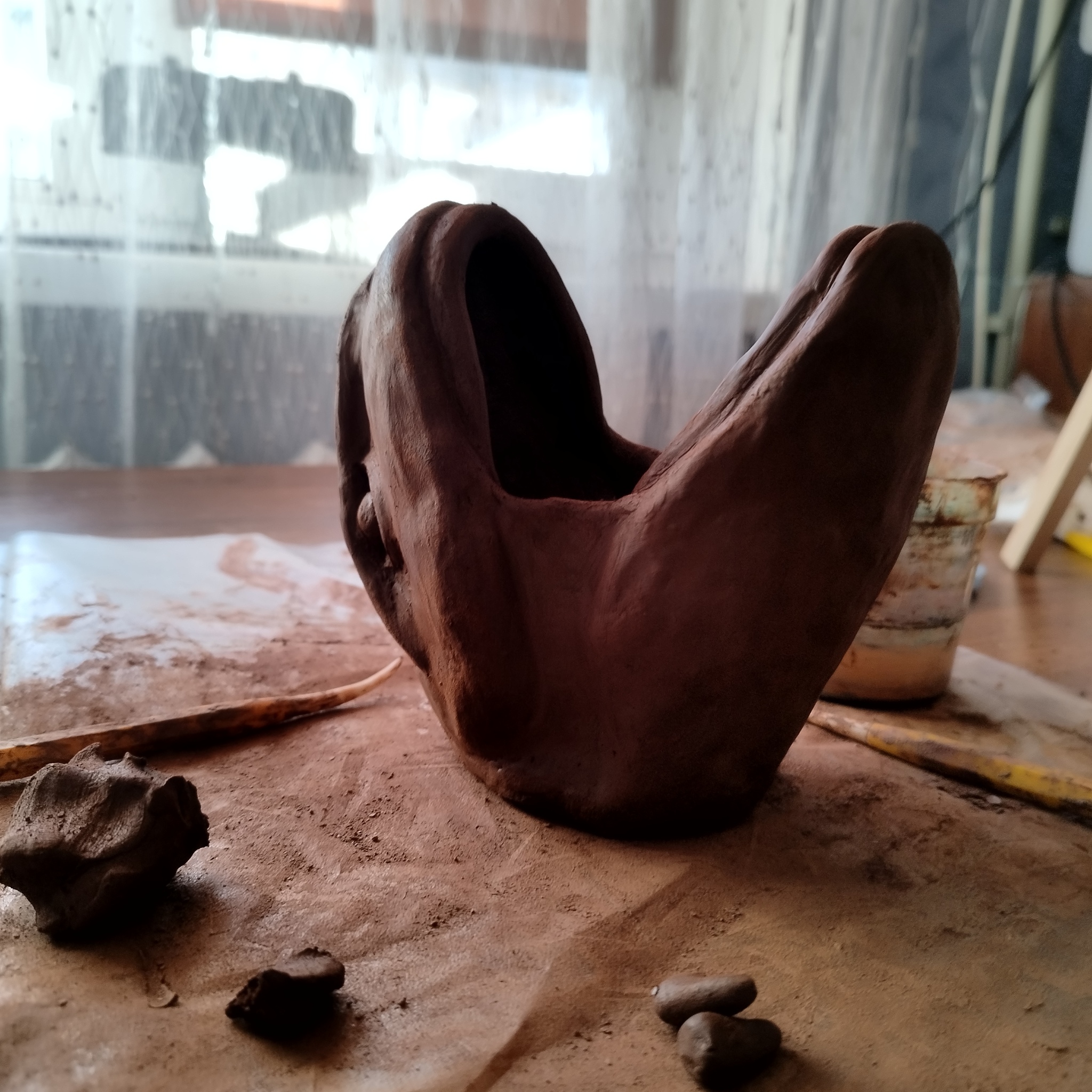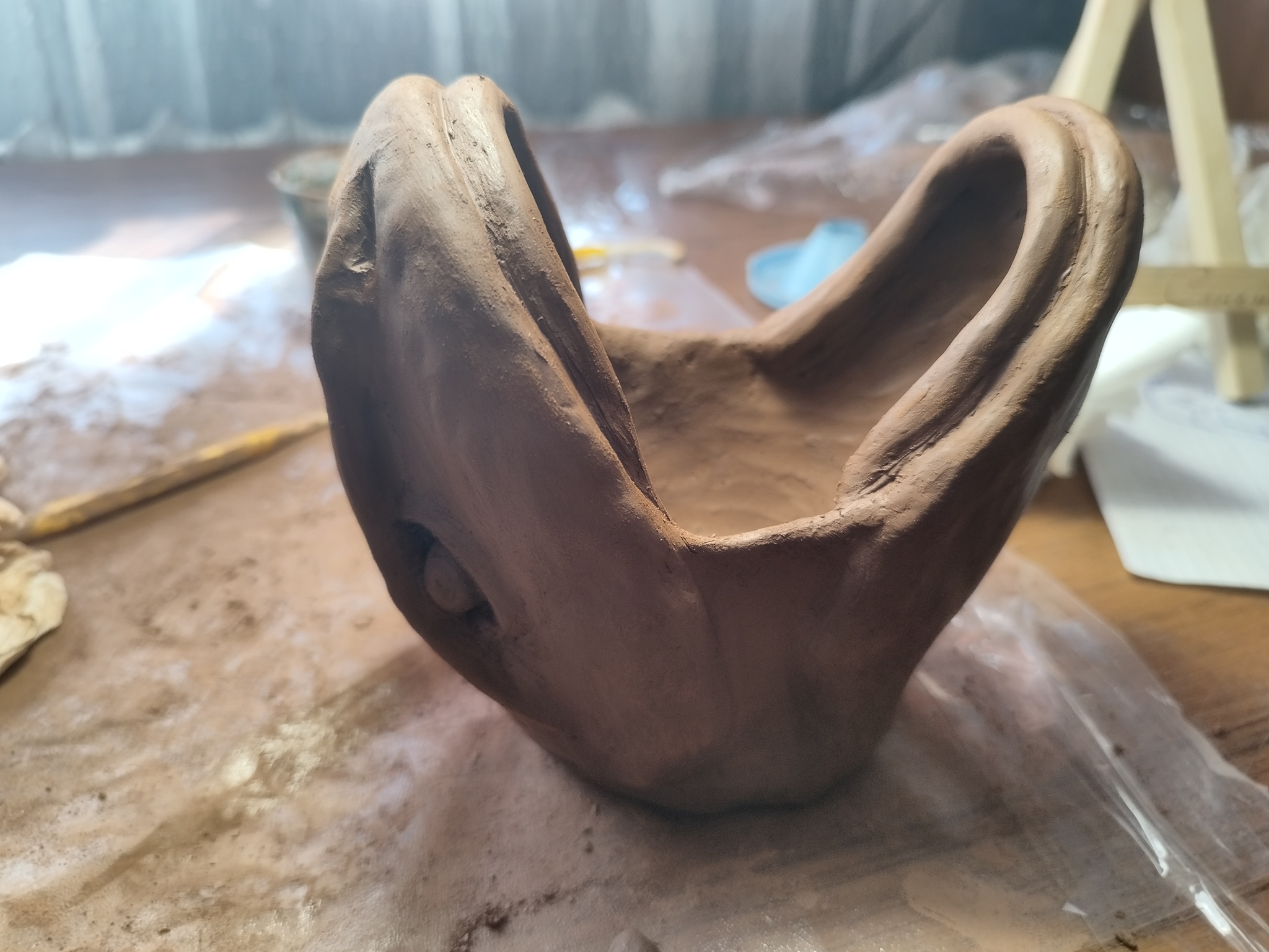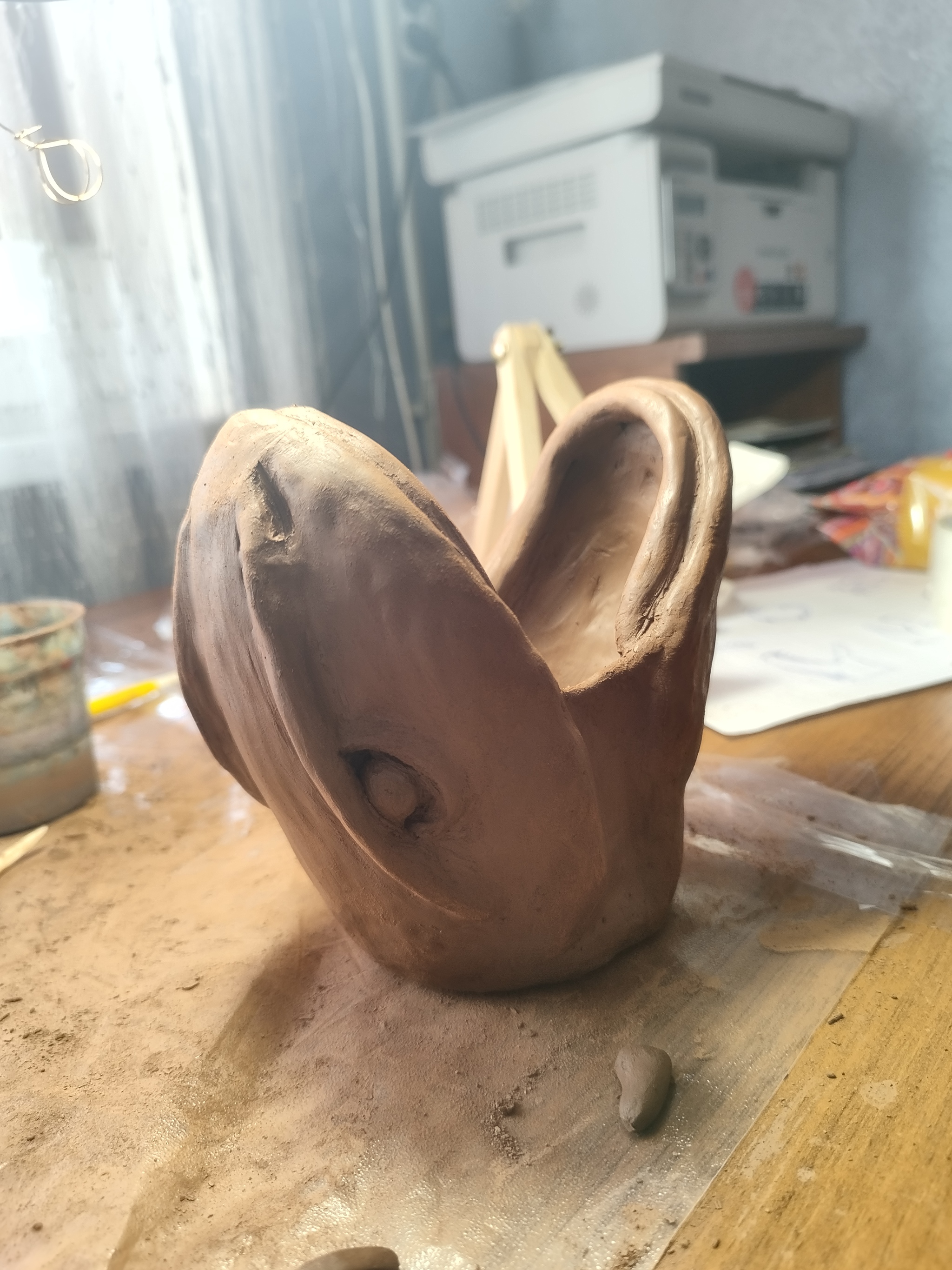 Предмет скульптура ушел от нас, но желание лепить осталось. В свободном плавании сам буду лепить. Сейчас делаю горшок в виде головы дракона. Не под рассчитал глины, и её не хватило на некоторые детали, жду когда прийдёт ещё, а не то дракон без зубов сможет только сосатб....