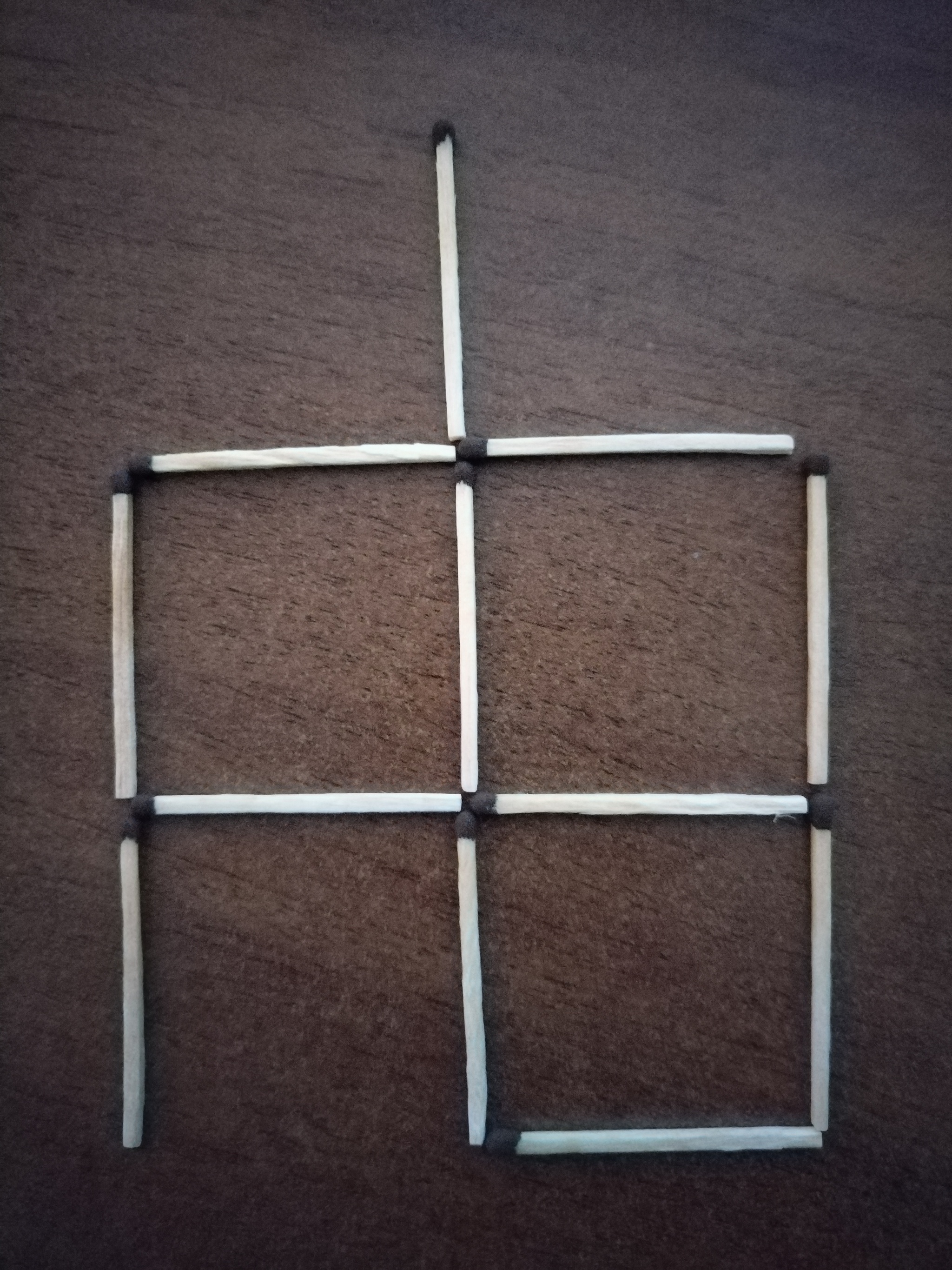 Переставьте две спички, чтобы получить три одинаковых квадрата.