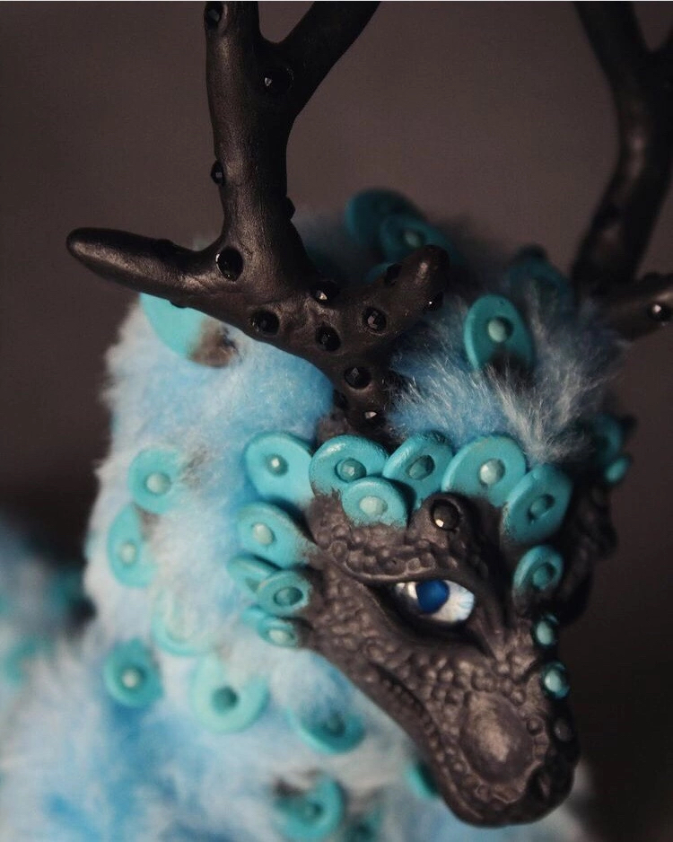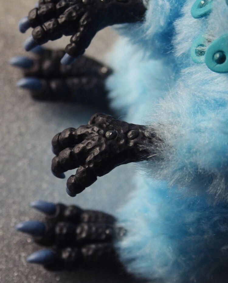 Материалы: полимерная глина CraftClay , акриловые краски Pebeo, белый мех окрашенный в голубой. Синтепон.