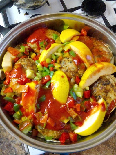 - Мясо. В более легком варианте вполне может фигурировать куриный фарш или фарш из индейки.. Он не такой насыщенный вкусом, по моему мнению, как свино\говяжий, но тем не менее- выбор есть выбор.