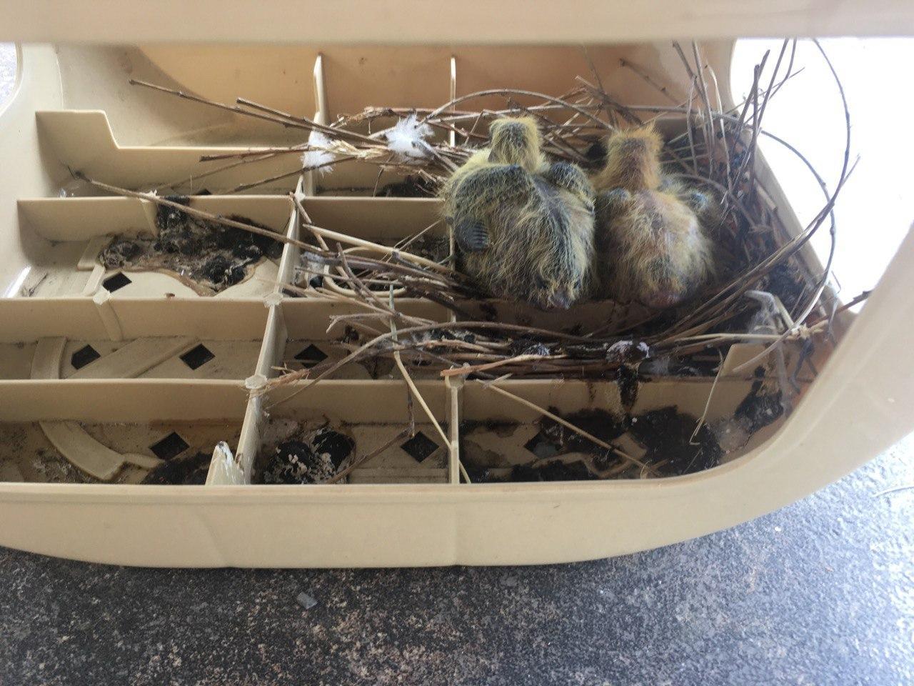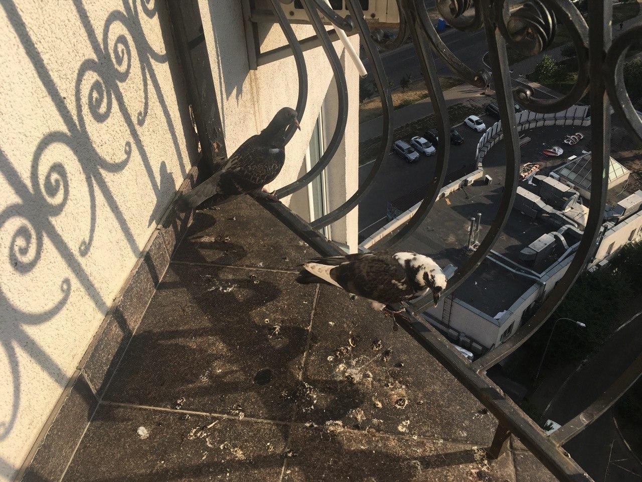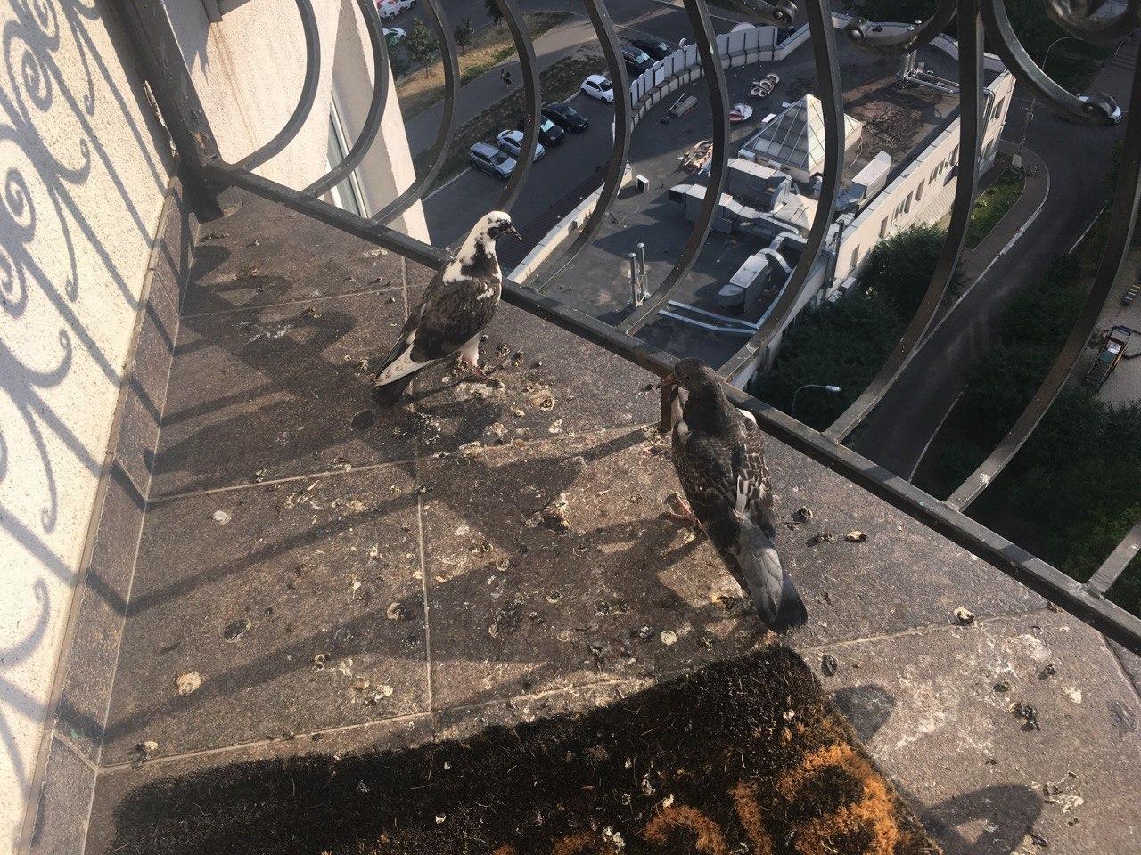 И теперь главное снова не провтыкать, и не жалеть, нормально оперятся, научатся летать, и всё, пора им от нас. А мы так и не поняли, это их родители снова дали потомство, или уже эти самые птенцы. Те, что были тогда на балконе, выглядят, как те выросшие птенцы, но тёмный похож на одного из родителей. А как там у голубей устроено, могут ли они с родителями, с братьями/сёстрами, я не в курсе. Возможно, как птенцы подросли, родители улетели и оставили им гнездо.