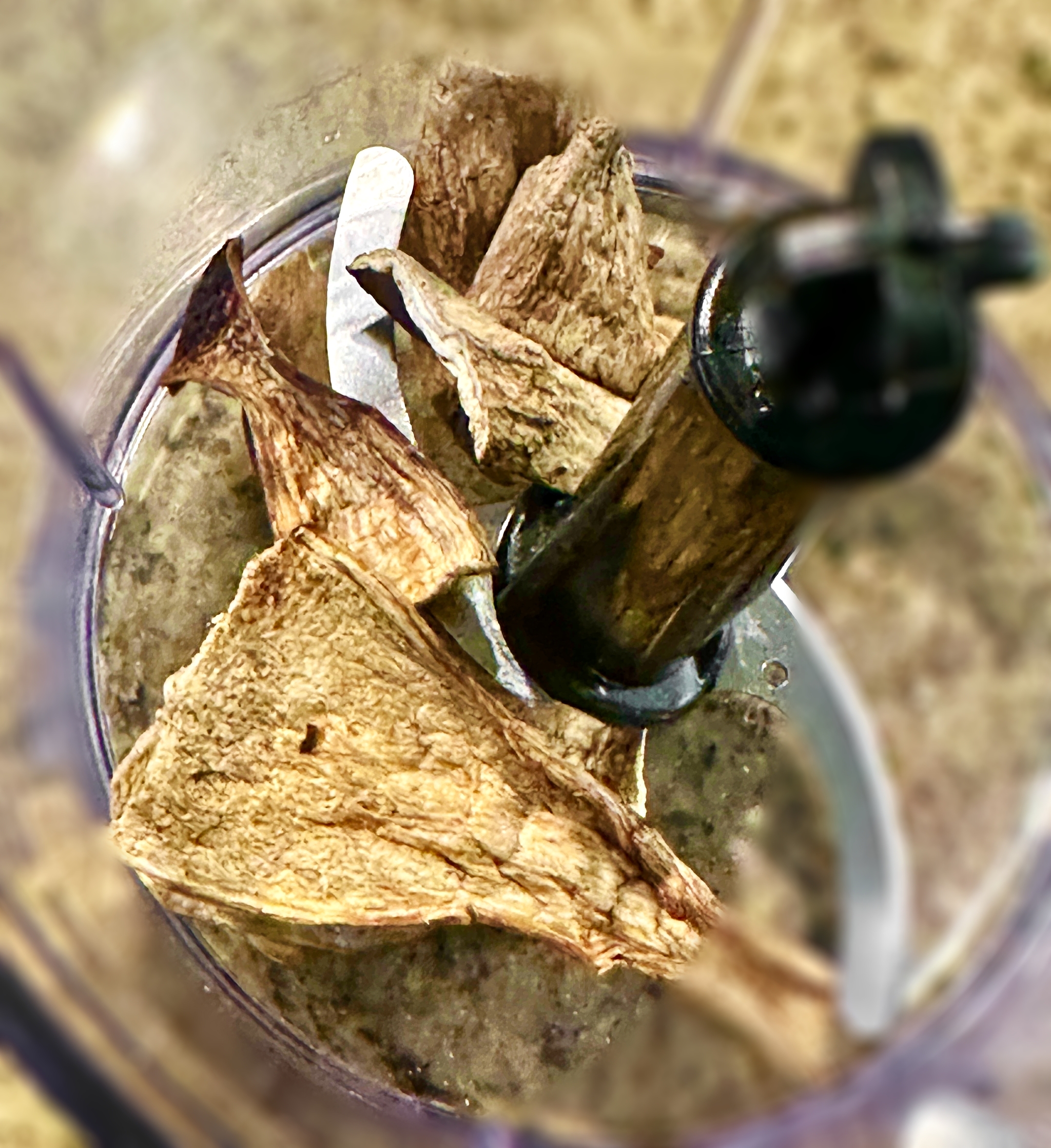 В блендер их и смолол в порошок. А порошок к мясу. И продолжал томить, пока остальным занимался.