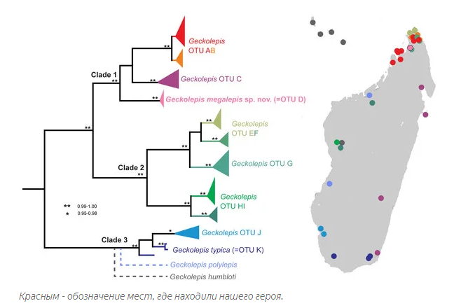 Совсем недавно, в 2017 году, немецко-американские зоологи поехали на Мадагаскар. Много там чудных животин, но наш герой затмил всех островных обитателей. Доселе нашего героя никто не замечал. Но когда учёные попытались поймать рептилию, они осознали, что геккон этот — не простой фрукт.