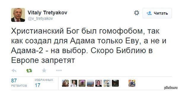 Если бог был гомофобом, то почему он создал геев? Тут работает логика полярностей. Если есть плюс и минус, то должно быть два плюса и два минуса, чтобы уравновешивать поле.
