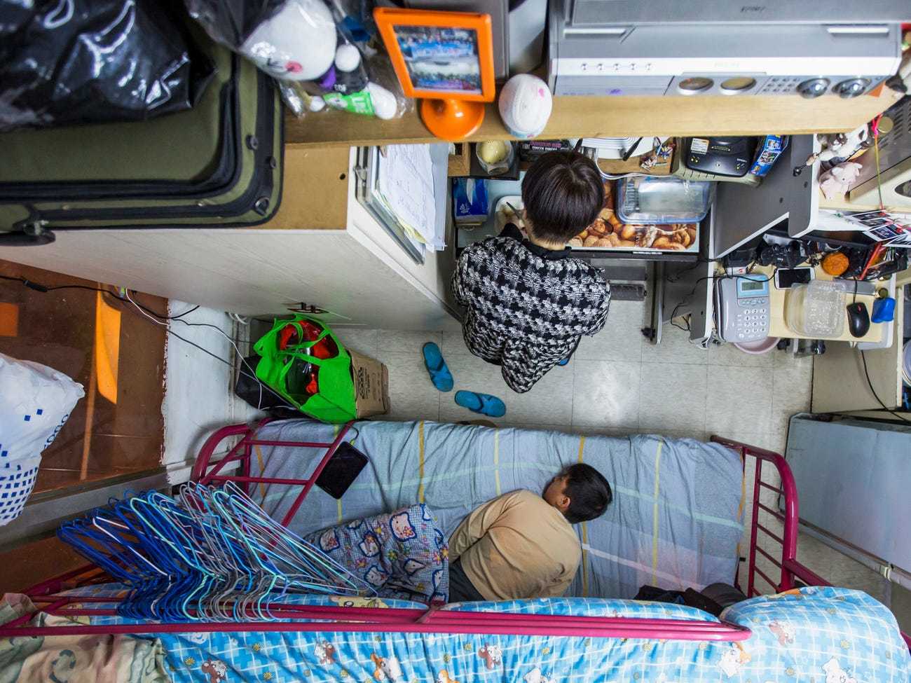 Таких людей оказывается немало. Согласно последним данным больше 210 тысяч горожан ютятся в подразделенных квартирах. Согласно правительственным данным, на обитателя таких клетушек приходится чуть больше 5 м2 жилого пространства. И это еще оптимистичные цифры. По сведениям негосударственных организаций, в обследованных ими подразделенных жилищах на человека приходится 50 квадратных футов – 4,65 м2. Это соответствует нормативу в местных тюрьмах. Лишь у 12% обследованных пространство превышает официальный жилищный минимум в 7 м2, у 2/3 нет отдельной кухни и у 1/5 отсутствует туалет. Больше половины жильцов заявили, что через стены просачивается вода и от них отшелушивается цемент.