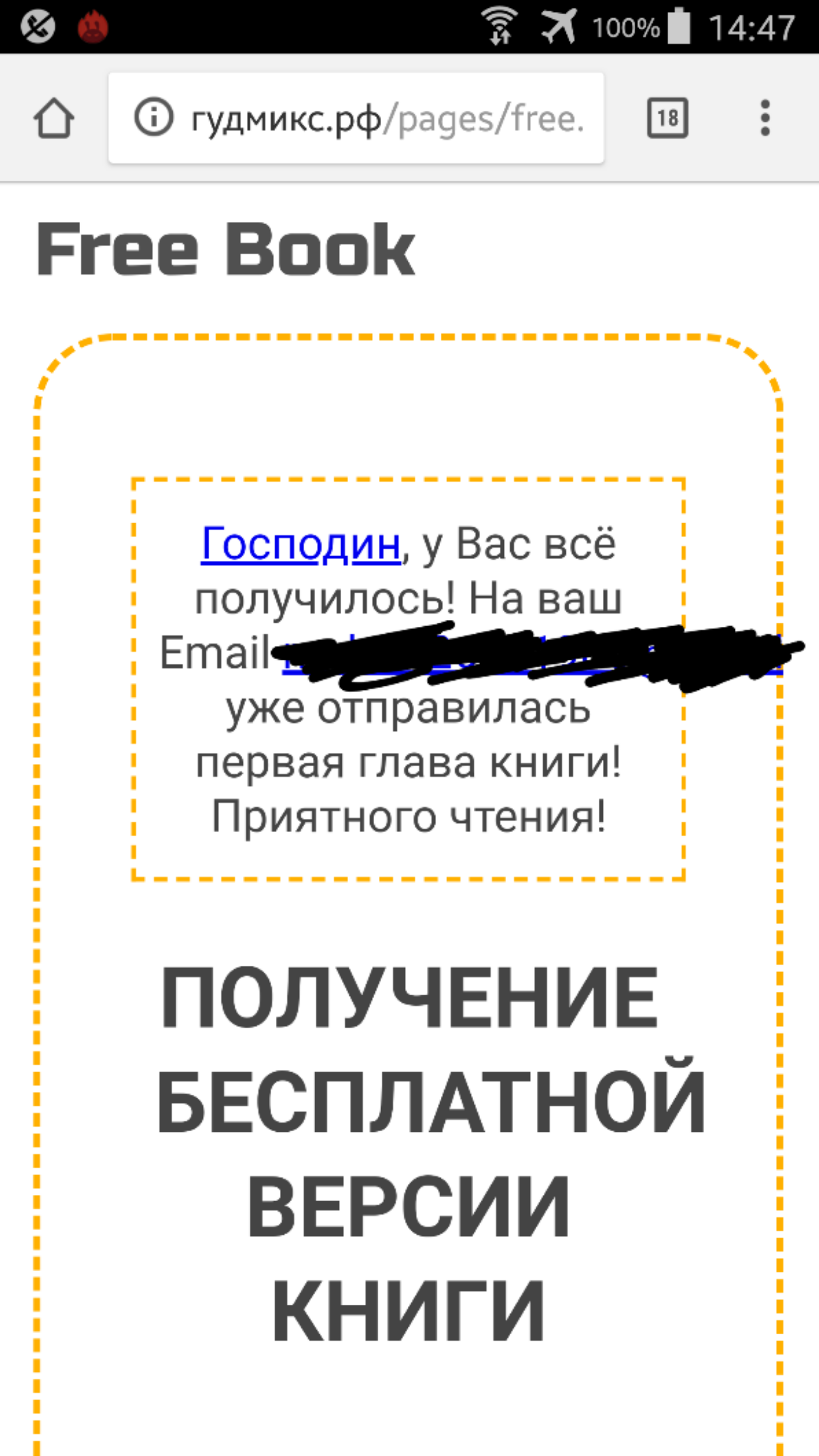 Если у вас получилось открыть форму, то можете смело вписывать в неё свой емайл - и в течение какого-то времени Вам на почту будет отправлена книга (правда, по частям). После заполнения практически мгновенно на почту придёт первая глава. На следующий день - следующая и т.д.