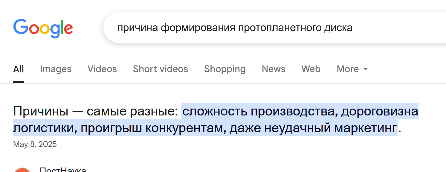 13 ssdmt 5 месяцев назад GOOGLE сошёл сума С 2001 года пользуюсь гуголом. Всегда он был эталоном качества поиска сложных технических данных и статей, сайтов. И вот на тебе ... пришёл ИИ Искусственный интеллект Google Поиск 1 Ещё 0