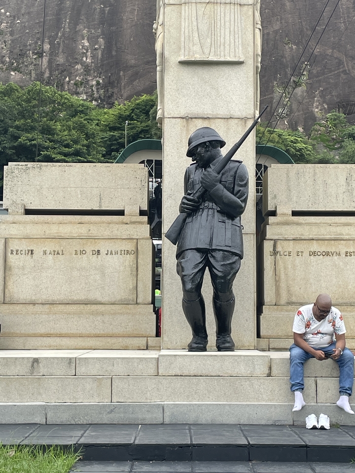 Внизу, возле локации много военных учереждений. Есть памятник раненному солдату О_о, блин, он не единственный такой в Рио, зацените