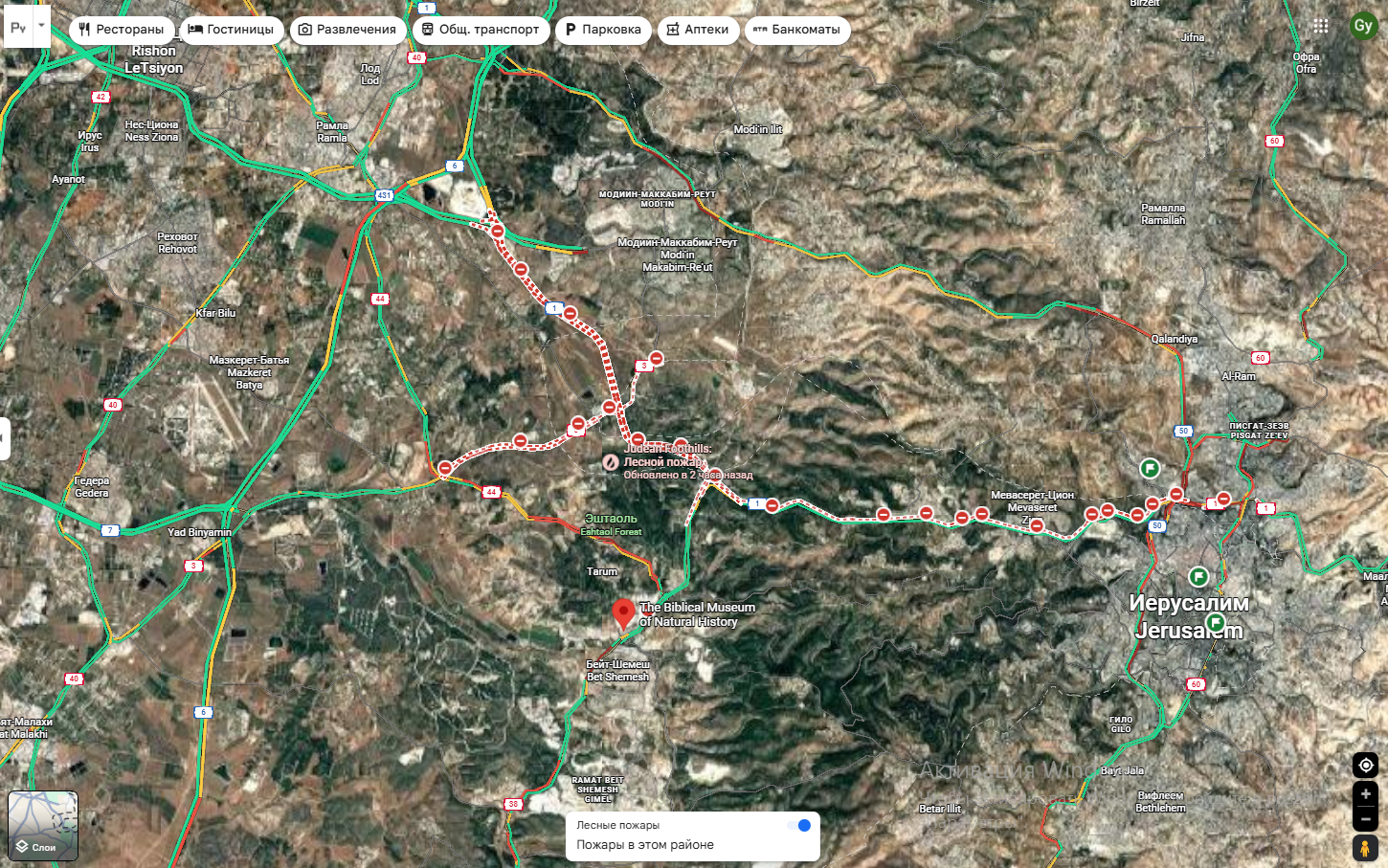 120 команд борются с пожаром, бушующим в нескольких местах на Иерусалимских холмах. Пожарные объявили всеобщую мобилизацию, начальник штаба поручил всем подразделениям оказать помощь в тушении пожара. Было эвакуировано несколько поселений, а также район в Бейт-Шемеше. 12 человек получили легкие ранения в результате отравления дымом, Израиль обратился за помощью как минимум к 5 странам. Метеорологическая служба: впереди трудные часы.