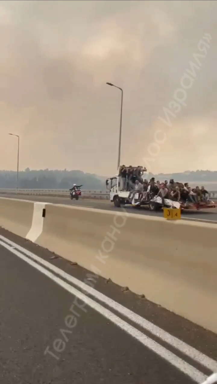 Люди бросают свои машины на шоссе и спасаются пешком или на подручных средствах.