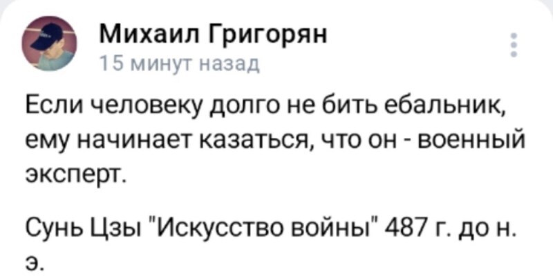 4938 stalewar13 Специфический юмор Горькая правда1 1 год назад Сунь Цзы Юмор Ирония Война X (Twitter) Скриншот Мат Насилие Повтор Искусство войны Зашакалено 131 19 6 3 Ещё 0
