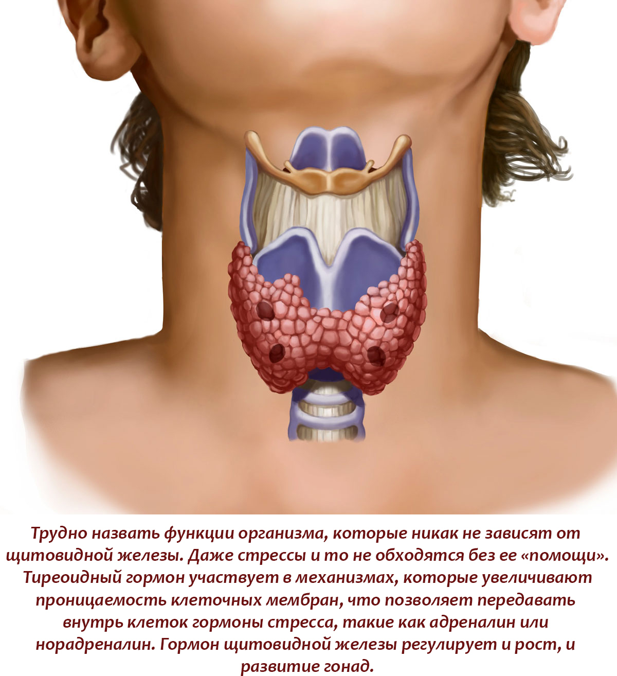 Чуть больше 100 лет назад, в 1911 году, аспирант Медицинской школы в Мюнхене, в будущем известный американский биолог Фредерик Гудернач, кормил головастиков различными тканями животного происхождения. Это несложное лабораторное исследование, которое сегодня подошло бы для школьных занятий по биологии, принесло поразительное открытие. Наевшись фрагментов конской щитовидной железы, личинки вдруг принялись стремительно метаморфизировать, то есть превращаться во взрослых лягушек. Именно с этого момента стало ясно, что выделяемый щитовидной железой тиреоидный гормон является мощнейшим стимулятором развития, и тогда биологическая наука решила присмотреться и к гормону, и к железе максимально пристально.