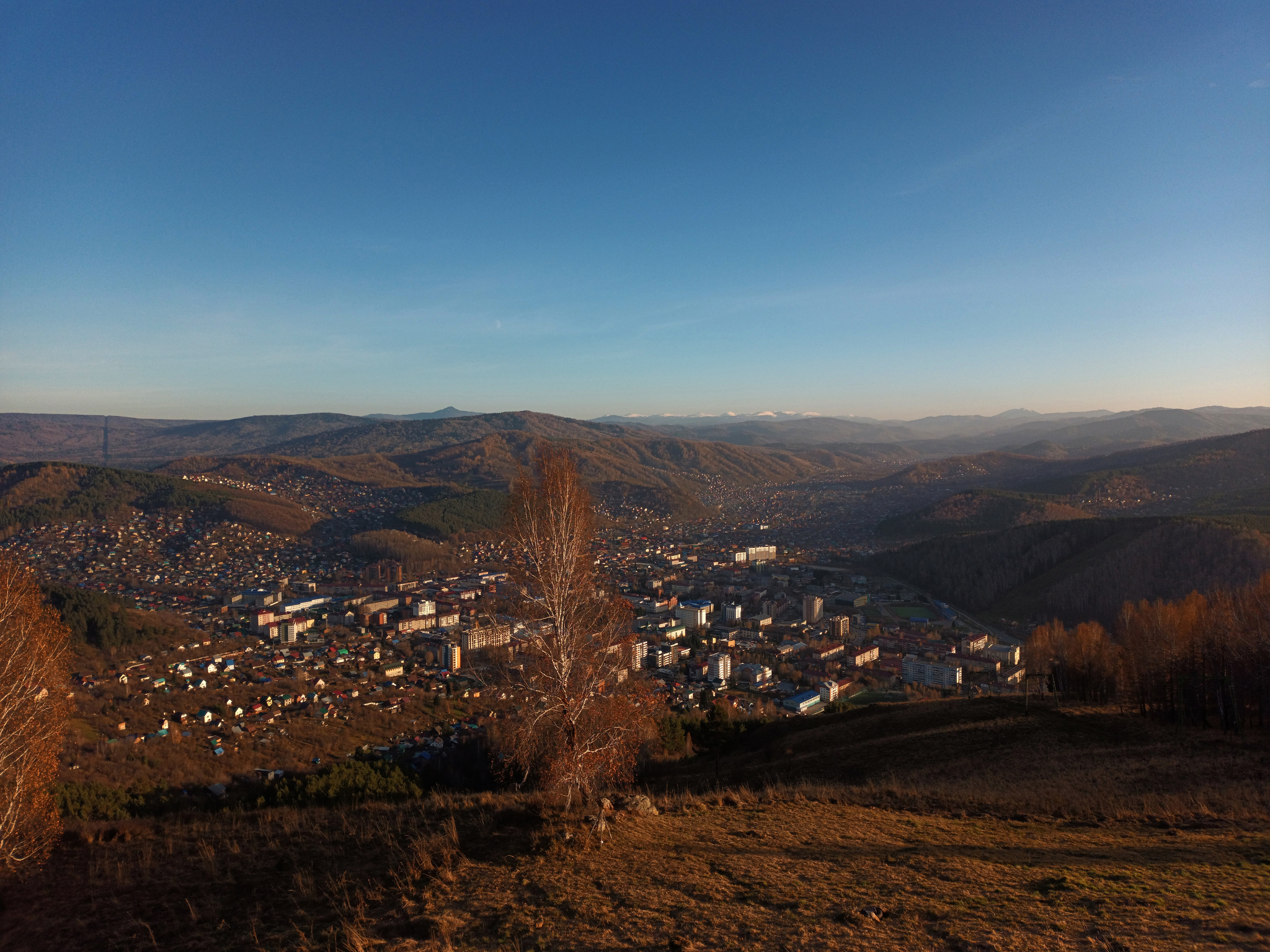 Фото со смотровой площадки на горе ТугаЯ. (640м от ур.м. или 320м от подножия). На неё можно подняться прямо на машине. Пешком, от ближайшей остановки автобуса - 30-40 минут.