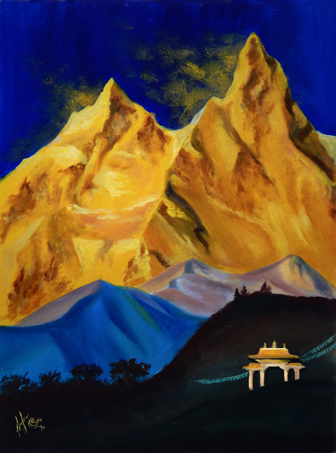 "На закате солнца и восходе луны" Серия:"Цветные горы" (картон 30х40, масло)