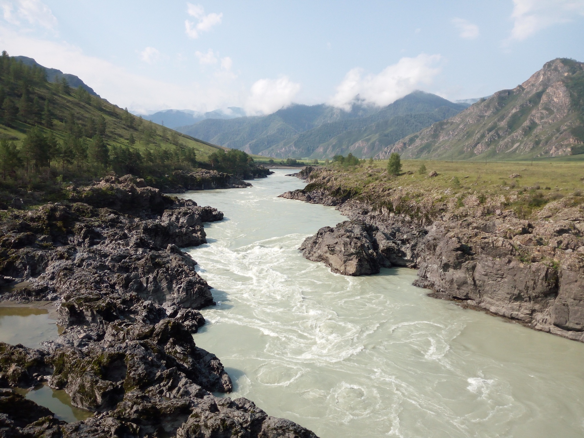 Вид с Ороктойского моста. Интересный факт: на Алтае очень удобные реки для подготовки к спортивным сплавам. Природа сотворила все уровни сложности.