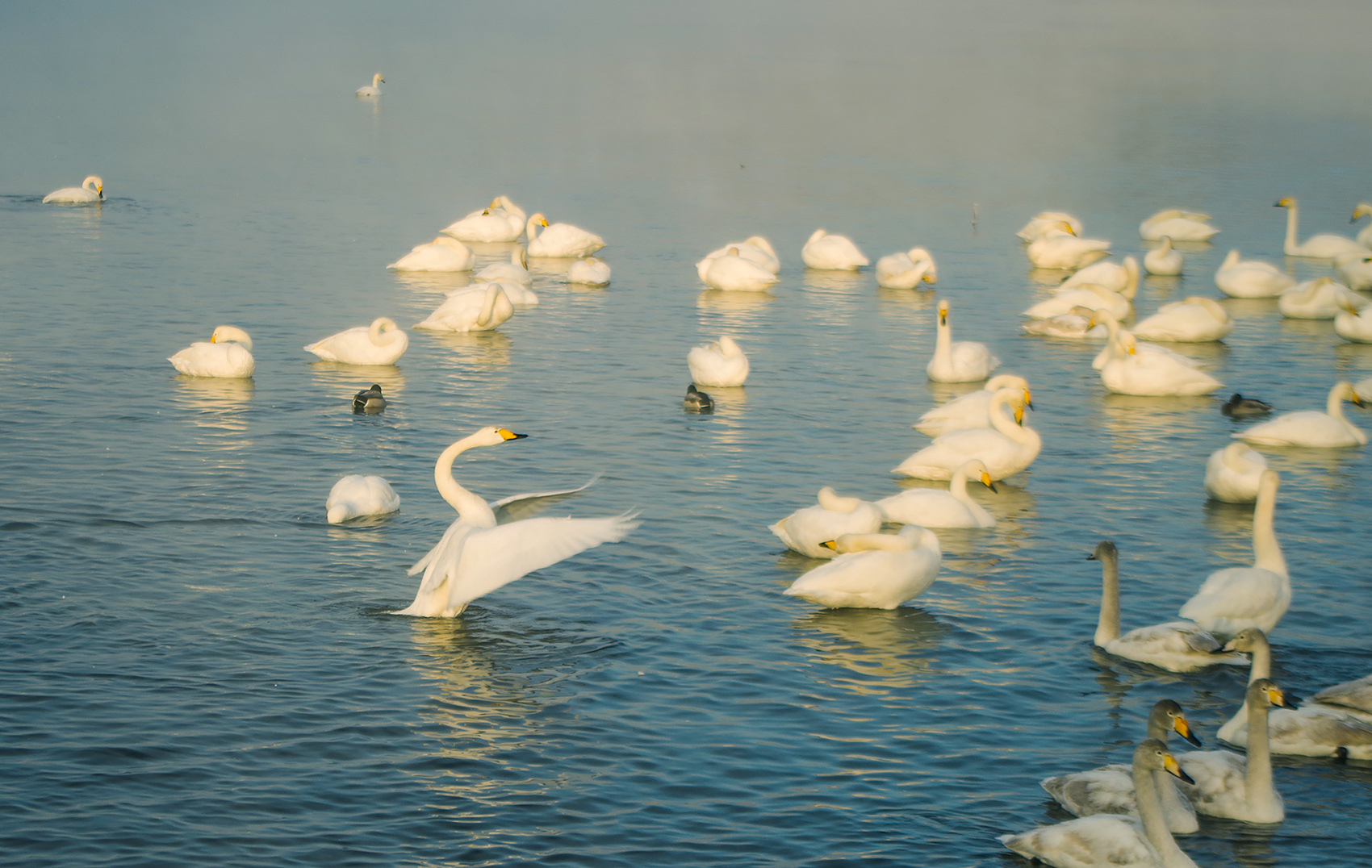 Мы специально отправились на незамерзающее озеро, чтобы полюбоваться лебедями.